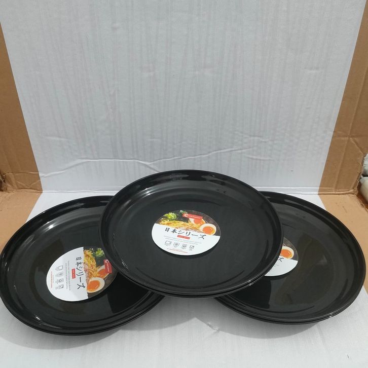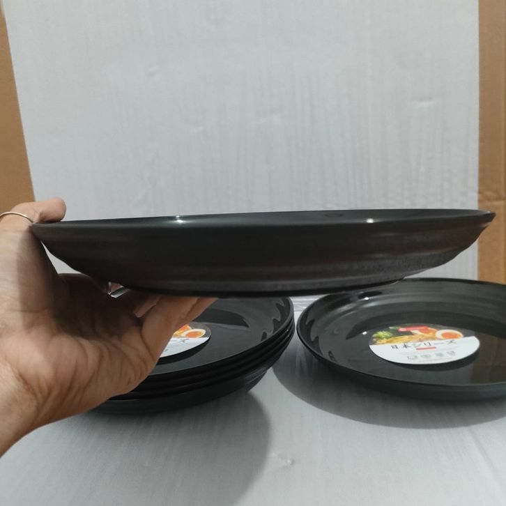PIRING BULAT HITAM UKURAN 8 INCH PIRING JAPAN PLASTIK (ISI 5 PIRING) / PIRING PLASTIK