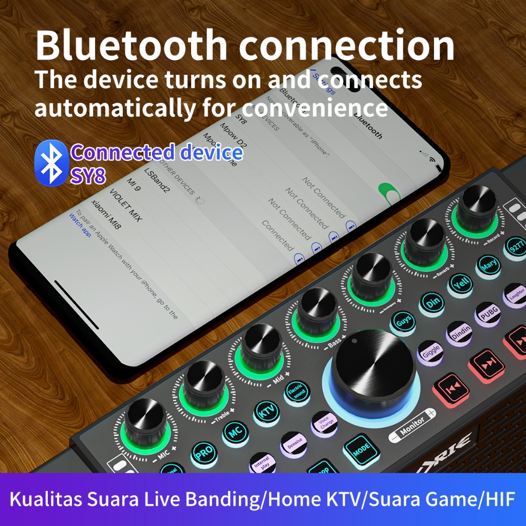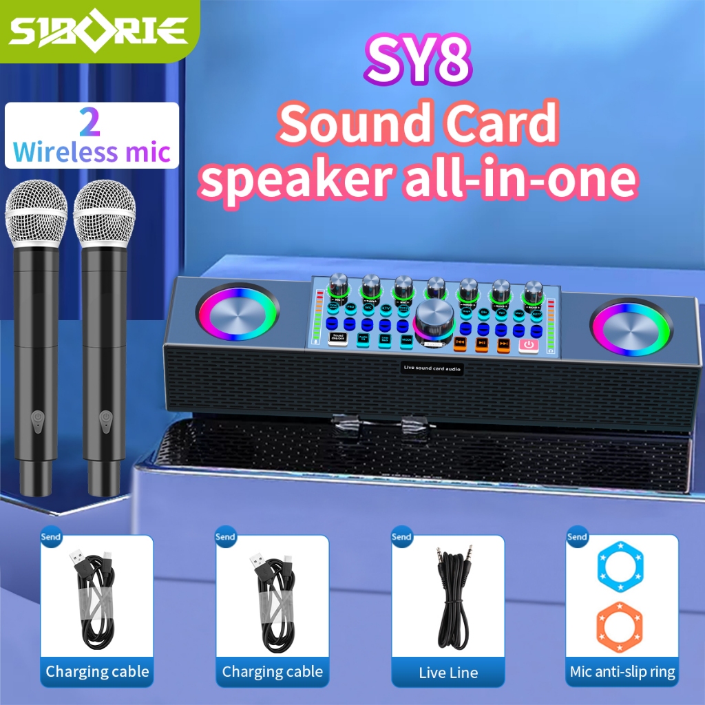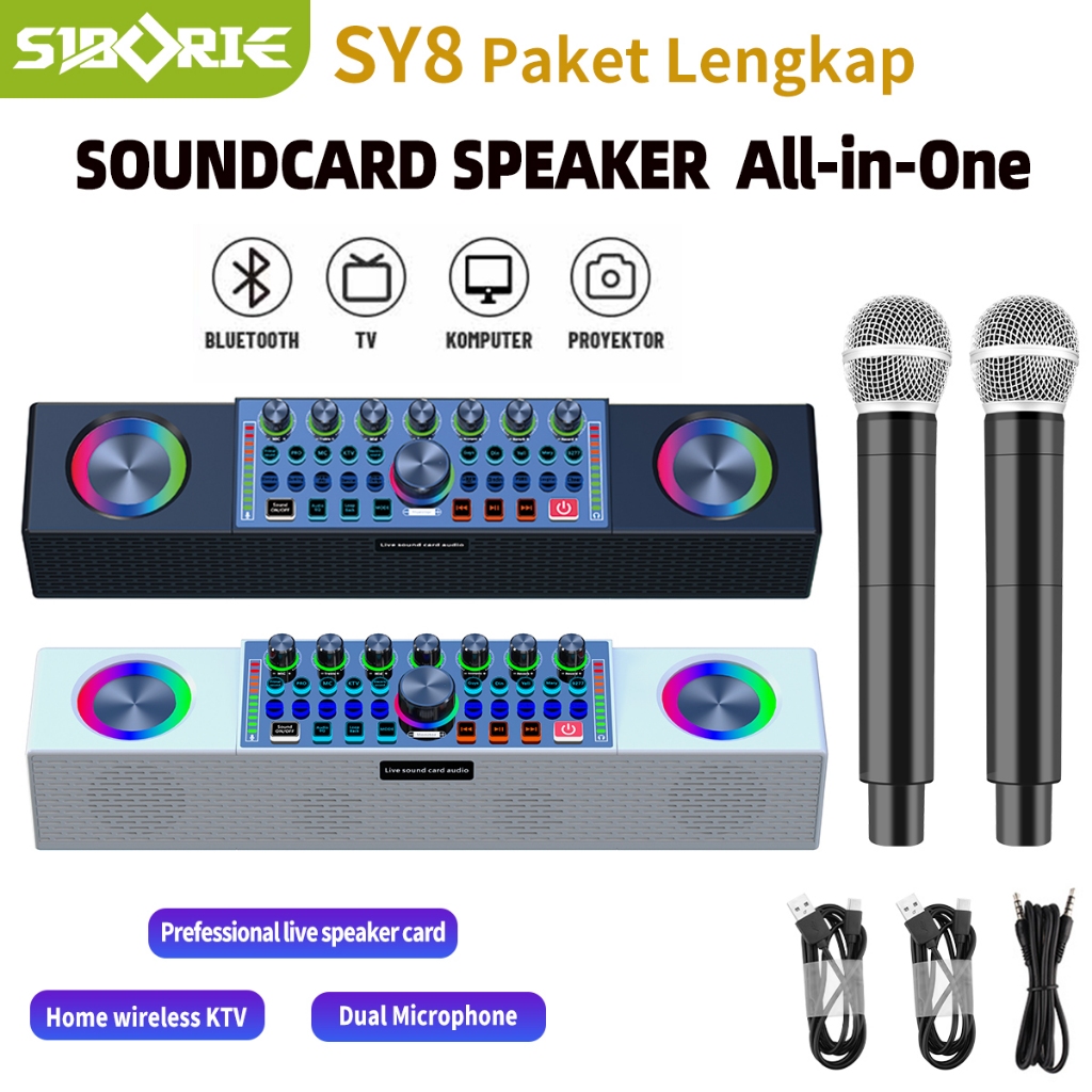 Siborie 【】SY8 Hitam/Putih Soundcard Speaker all-in-one Bluetooth sound card with wireless two microphone with external s
