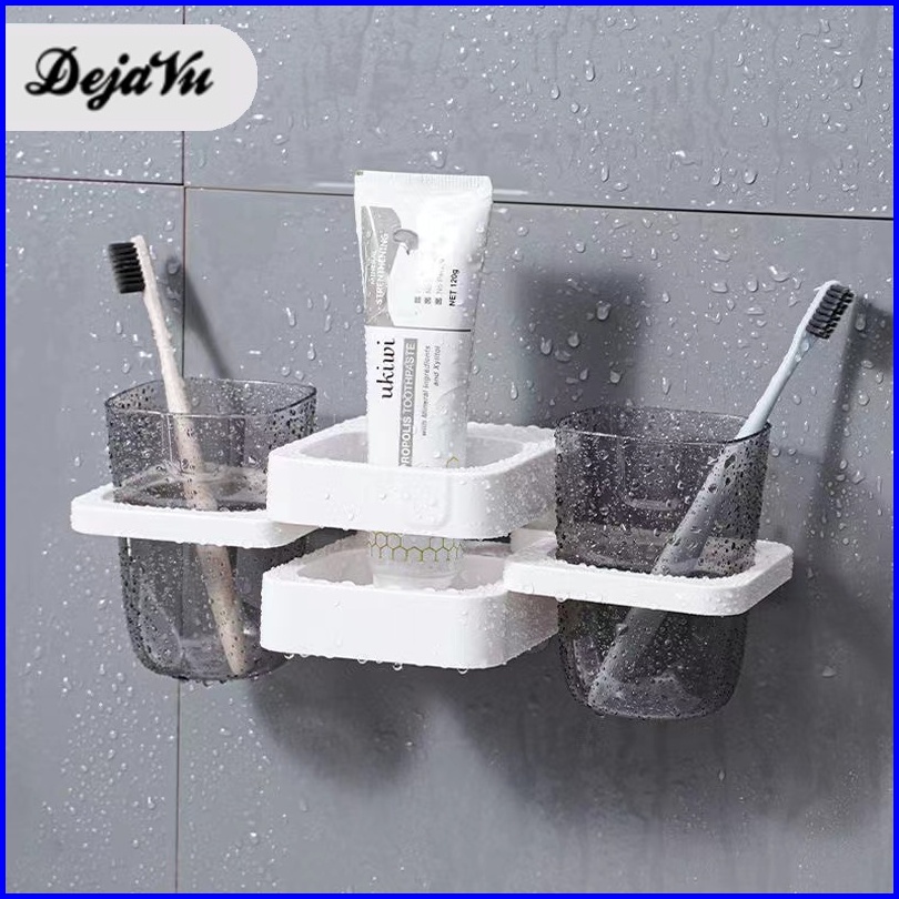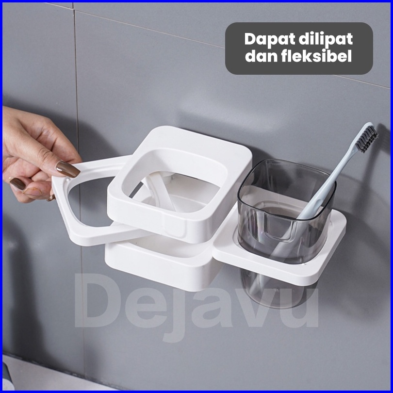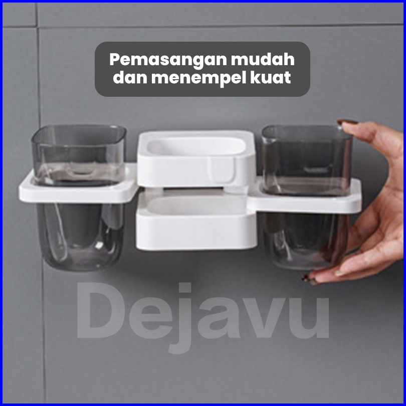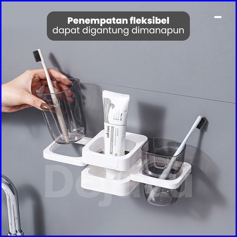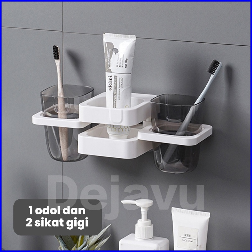 Dejavu Rak Sikat Gigi Gelas Kumur Tempel Gantung Kamar Mandi Tempat Organizer Odol Tooth Brush Holder Hrd333