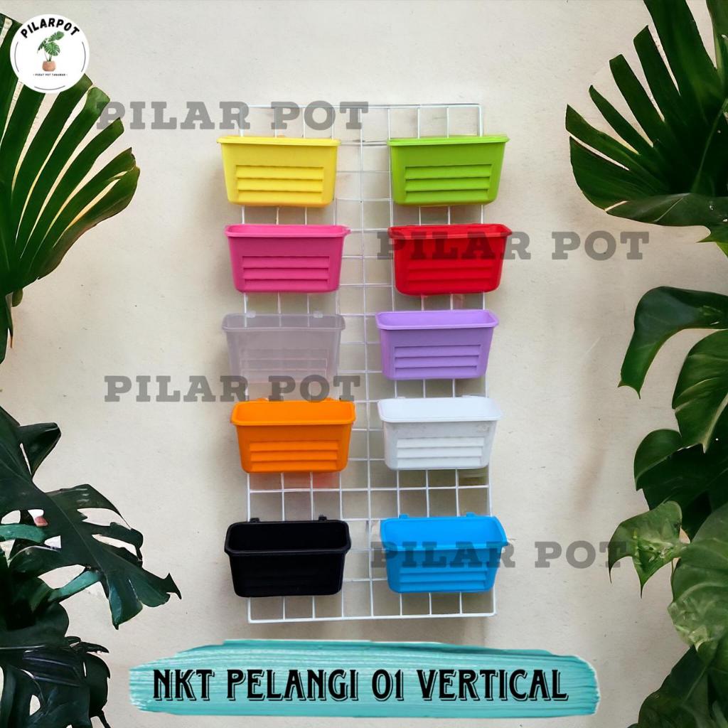 ( TERLARIS ) POT BUNGA TANAMAN NKT VERTICAL TEMPEL 22 CM WARNA WARNI - NKT PELANGI 01 WARNI