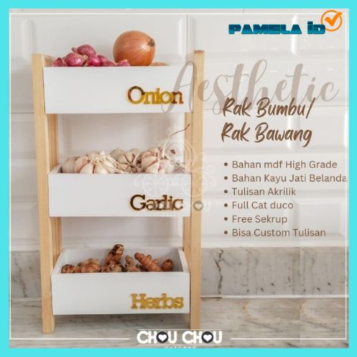 chouchou - Rak Bawang Kayu kotak Bumbu Kayu Aesthetic