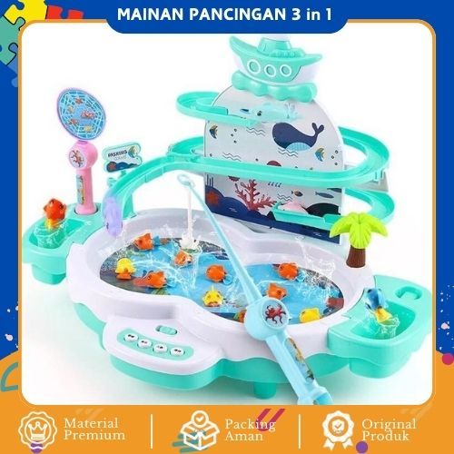 Mainan Pancingan 3 In 1 Pancingan Ikan Magnet Seluncuran Dolphin Dan Mini Piano SNI