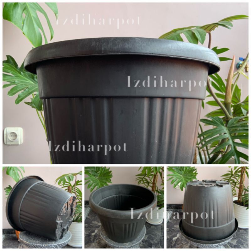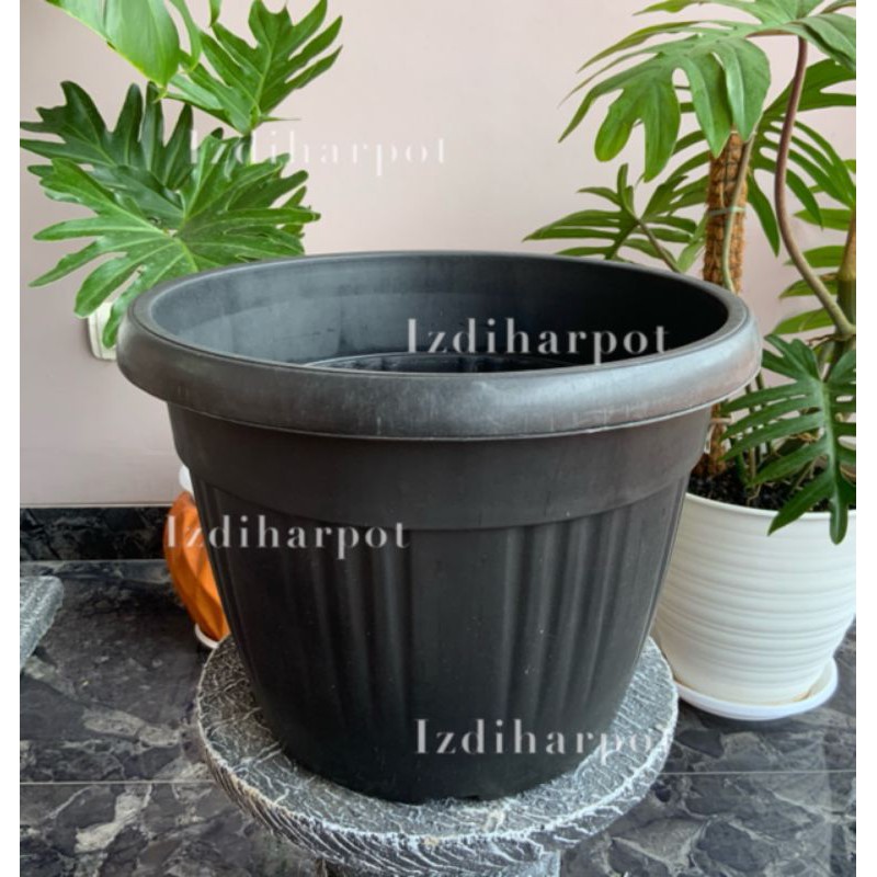 ( TERLARIS ) Pot Bunga Tanaman Plastik Hitam Grace 35cm Kuping - Grace 35 Kuping