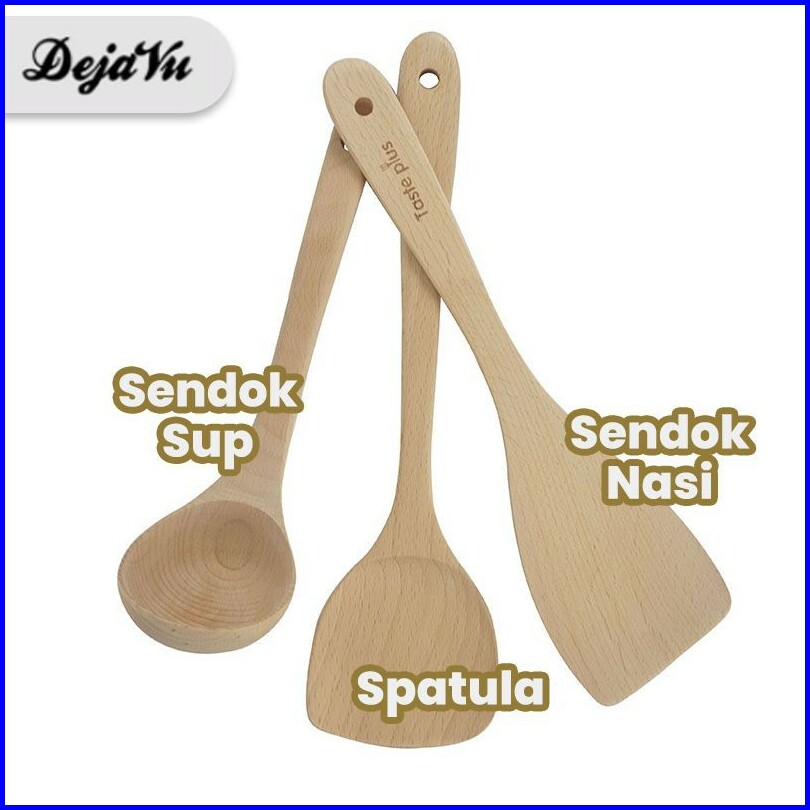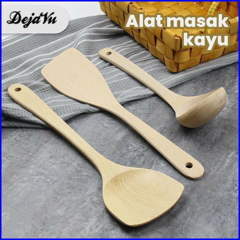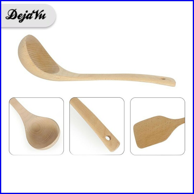 Dejavu Sutil Kayu Sodet Spatula Kayu Beech Sendok Sup Pengaduk Nasi Adonan Centong Bulat Hls201
