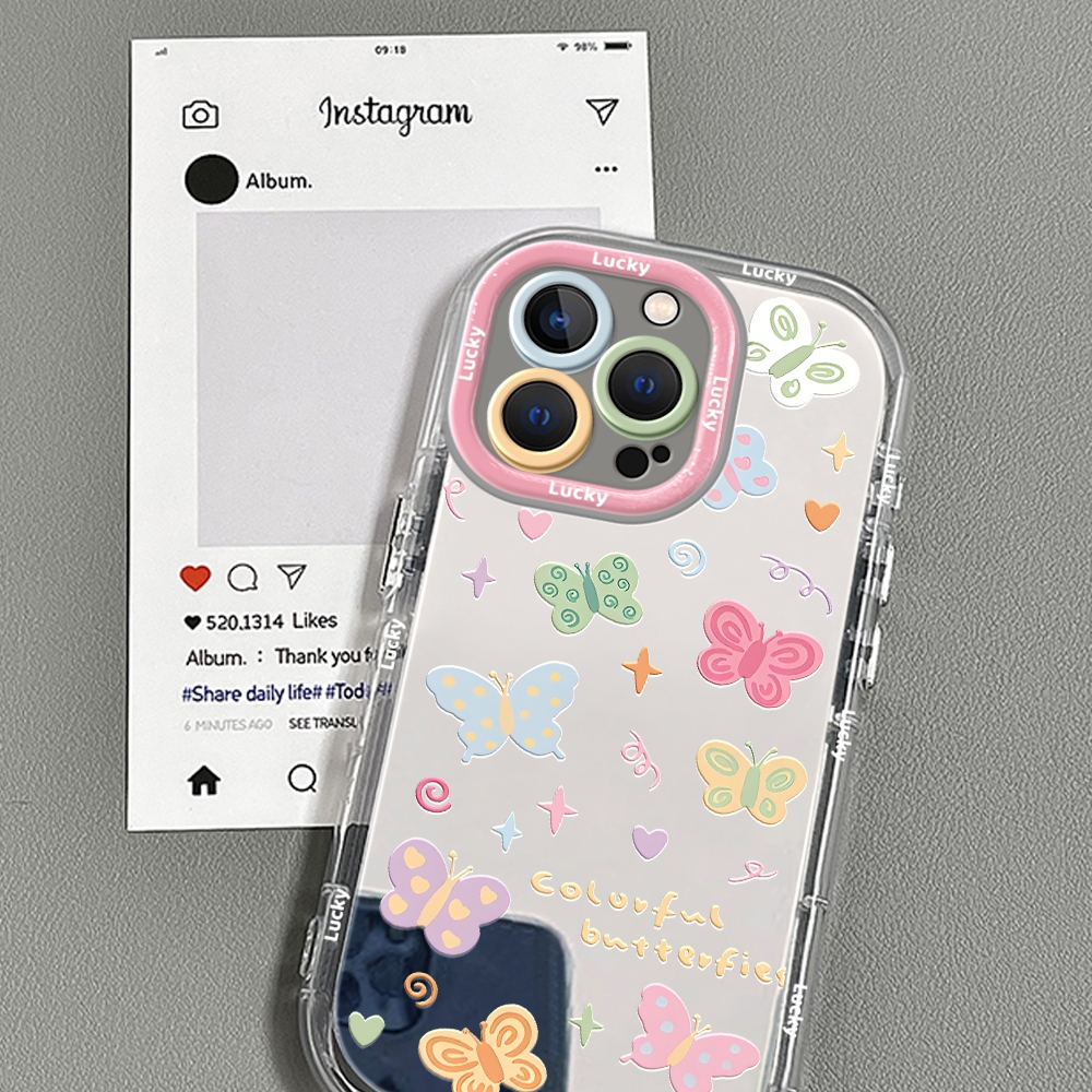 Soft Case Case untuk iPhone15 pro max plus 12 13Pro 14 11 Plus 6 7 8 6+ 7+ 8+ Xs Max Casing ponsel anti jatuh kupu-kupu