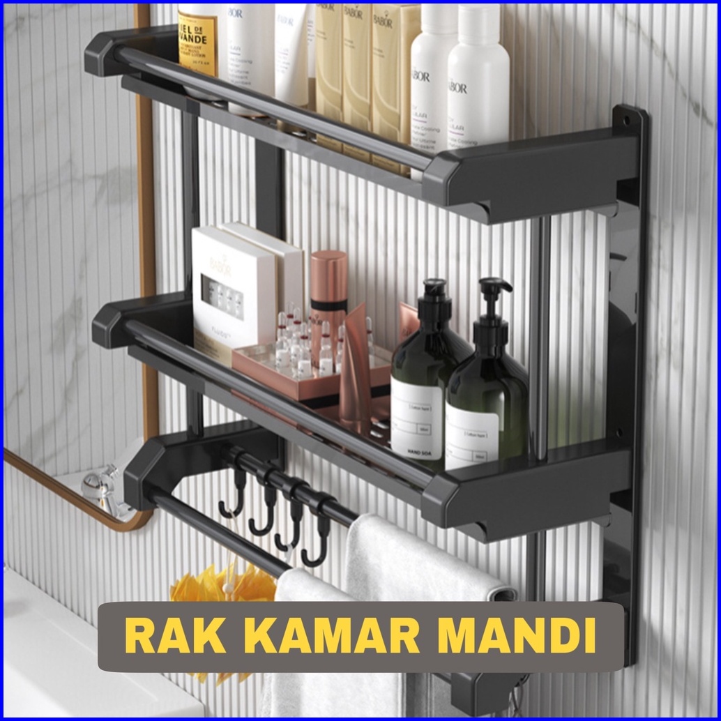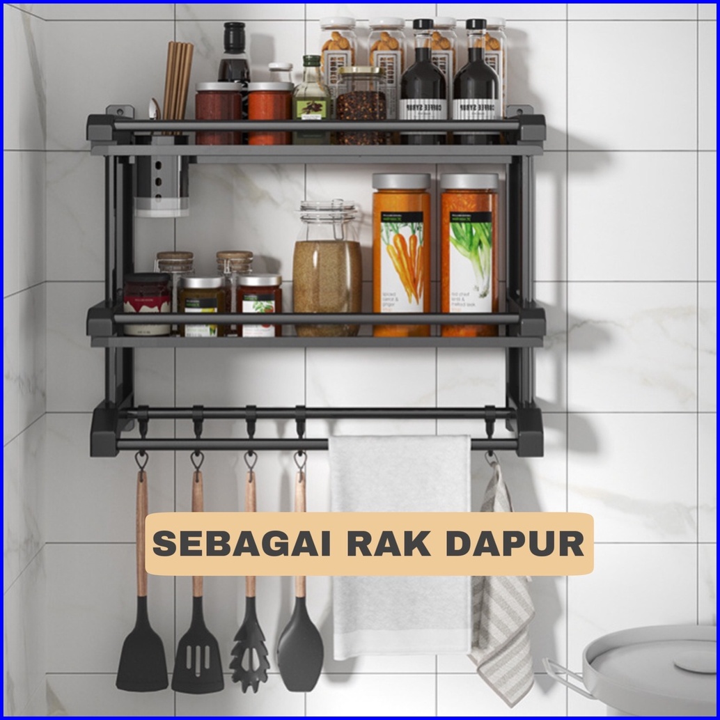 Dejavu Rak Kamar Mandi Dinding Rak Bumbu Dapur Rak Sabun Toilet Stainless Steel Rak Tempel Handuk Gantung Hitam Hrd111