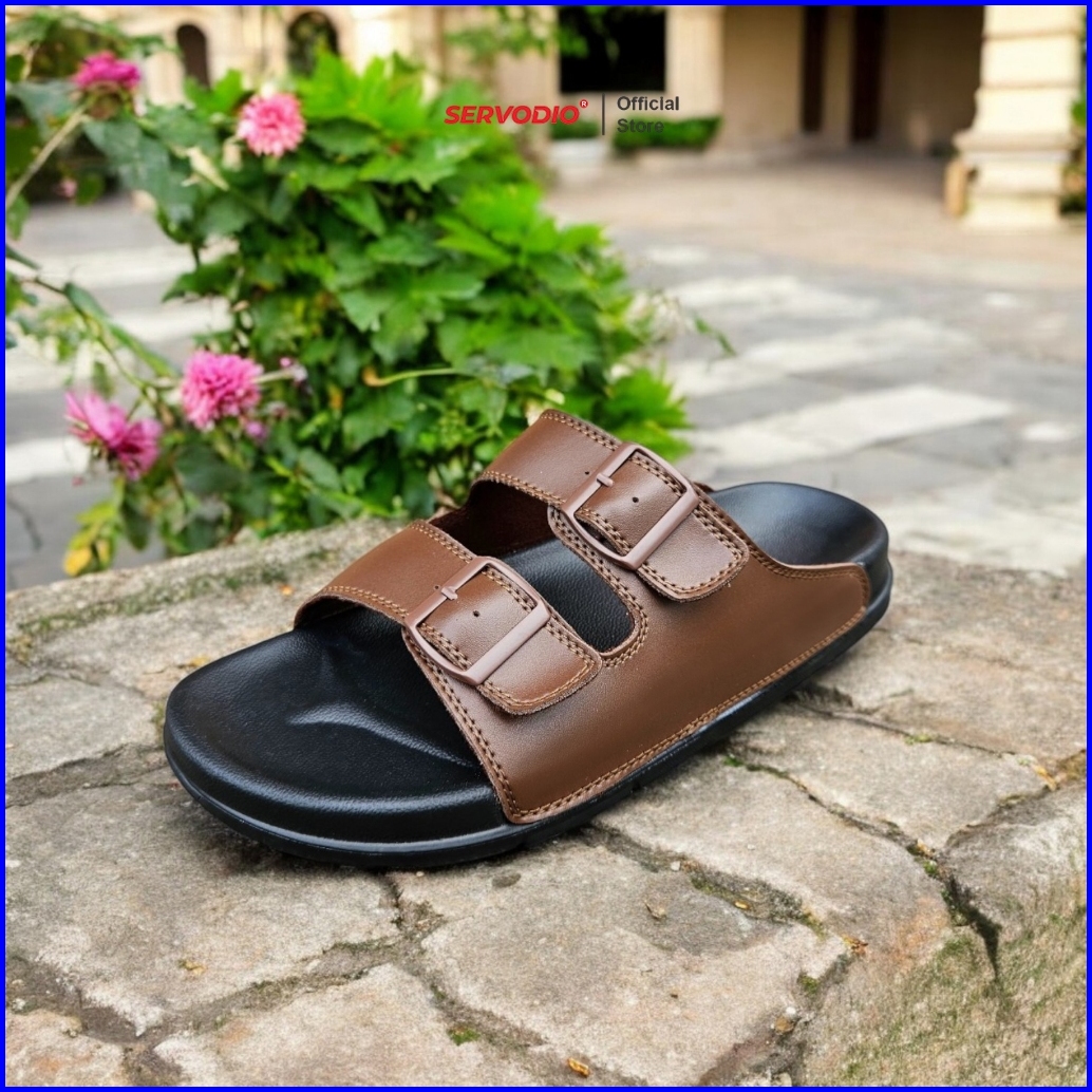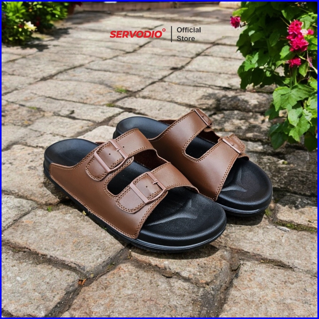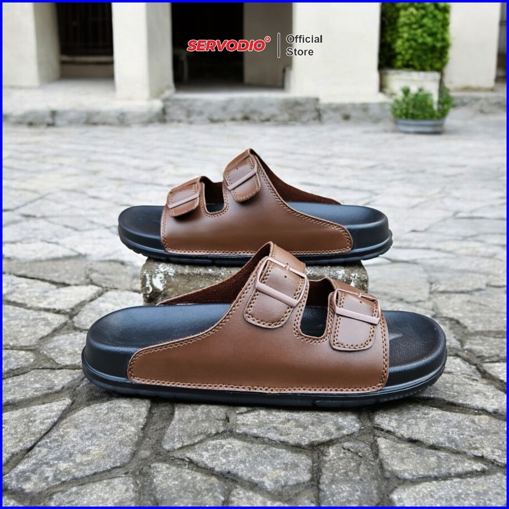 Servodio - Anom Brown 39-43 - Sandal Pria Slide Double Straps Rings