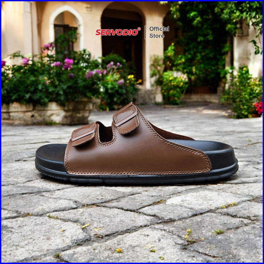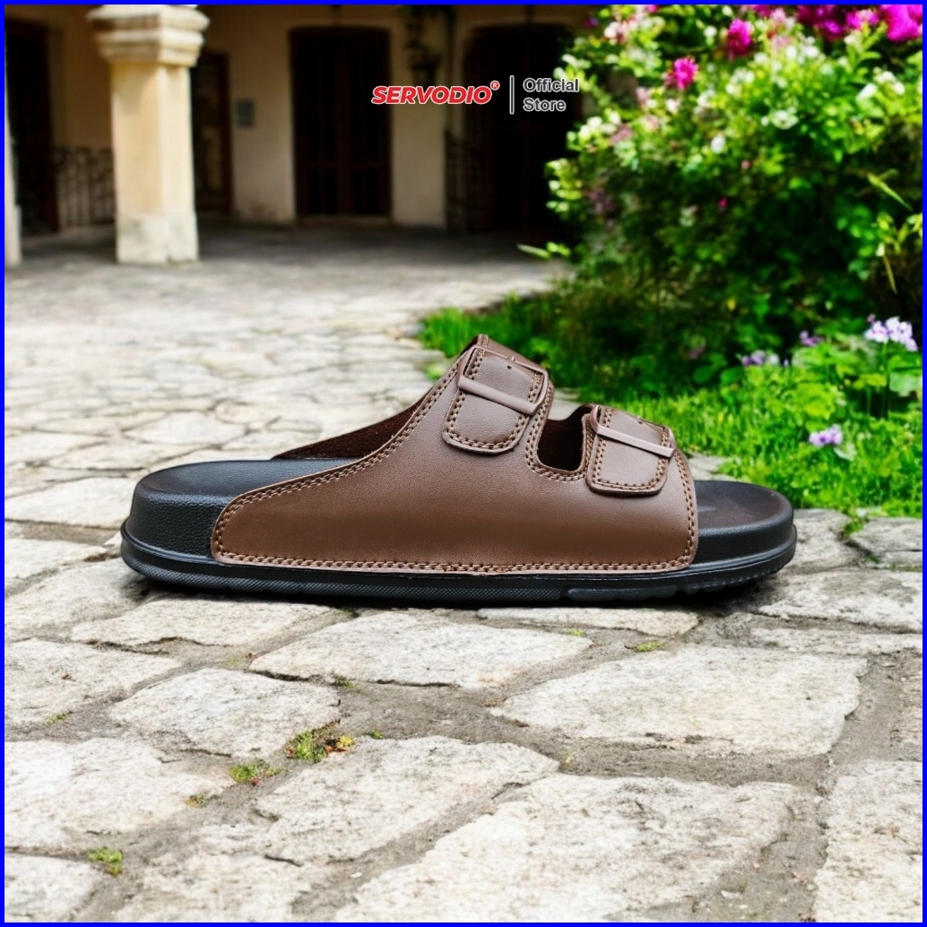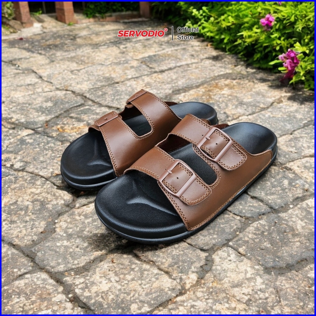 Servodio - Anom Brown 39-43 - Sandal Pria Slide Double Straps Rings