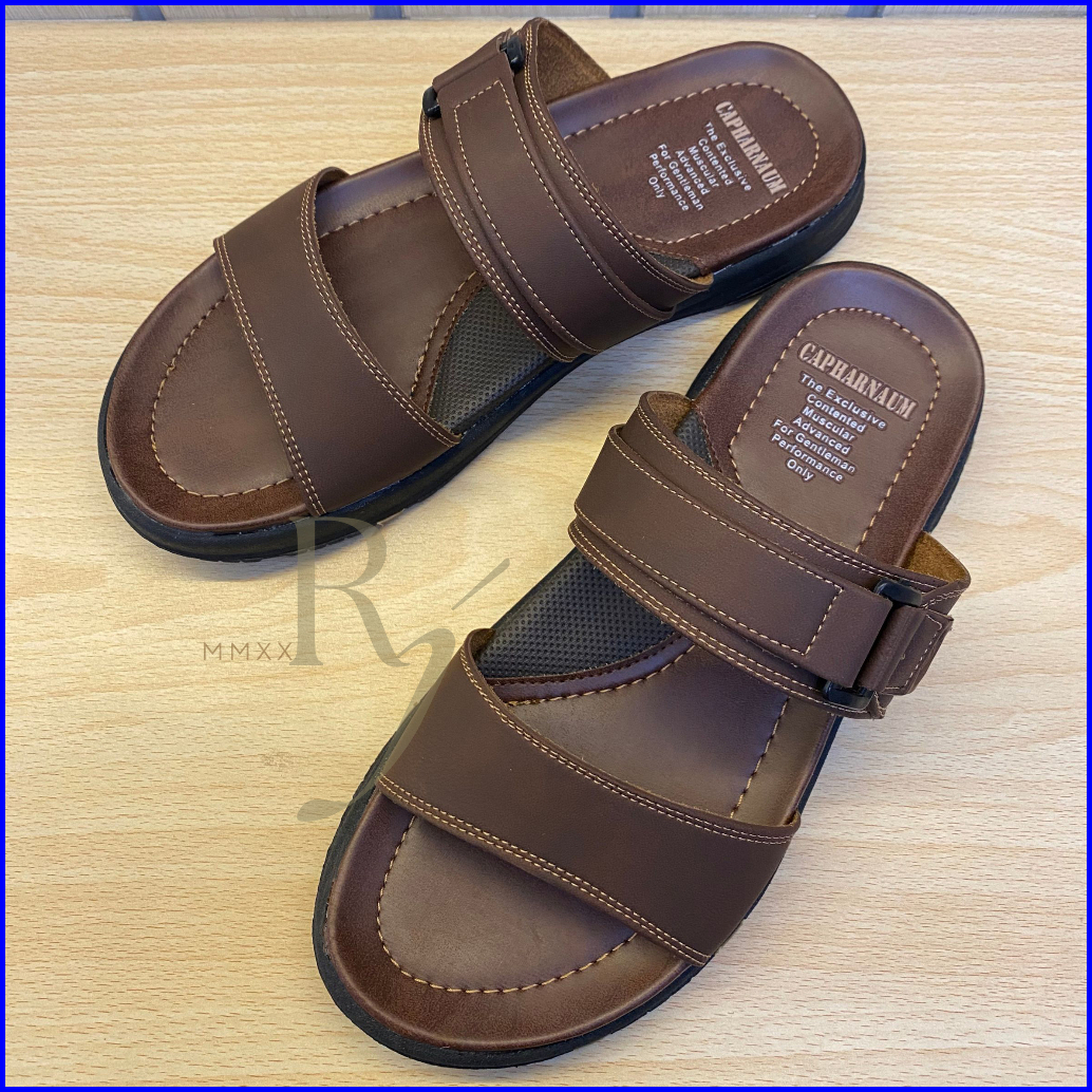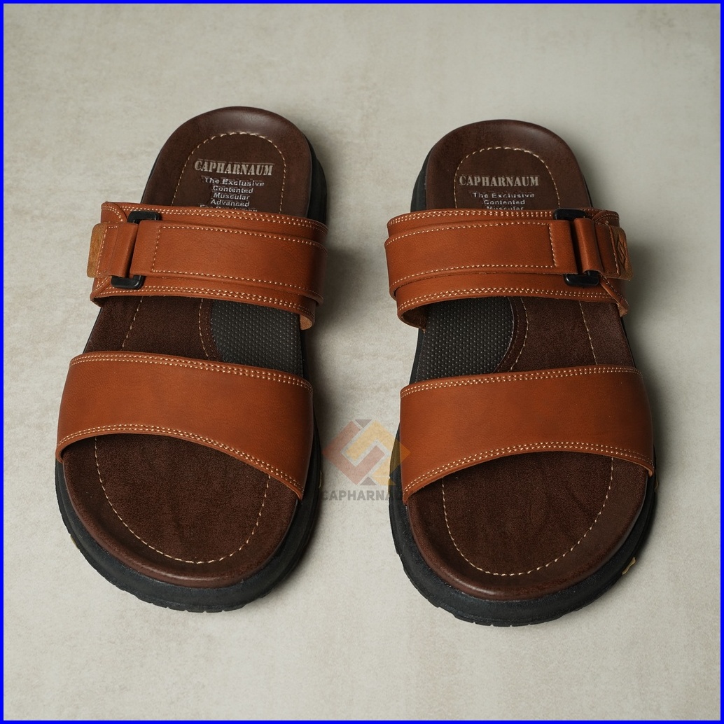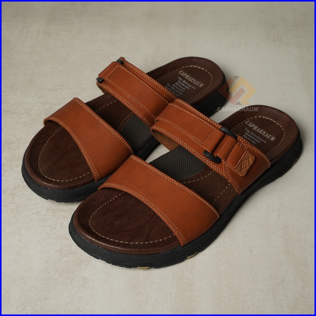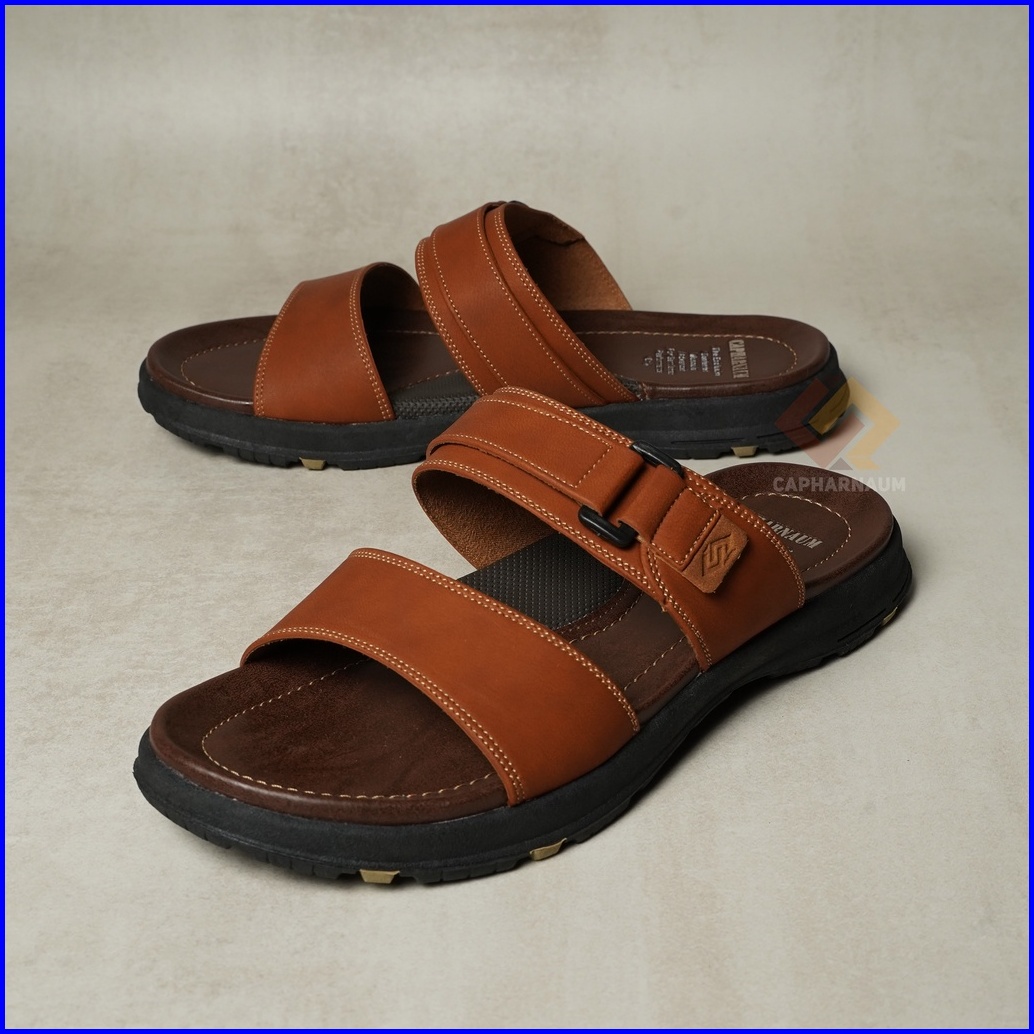 Capharnaum Rambo 201 Sendal Selop Ban 2 Kulit Gesper Sandal Slip On Kasual Pria Kulit Premium