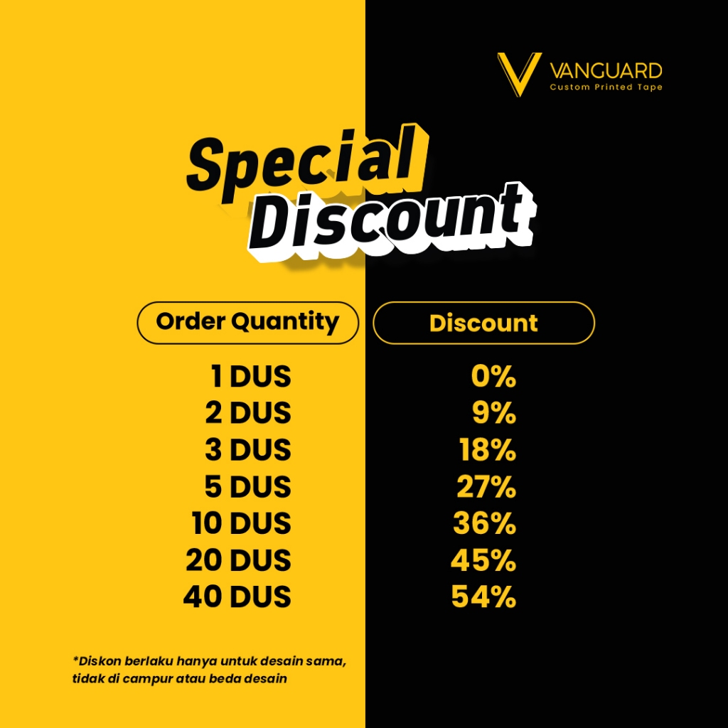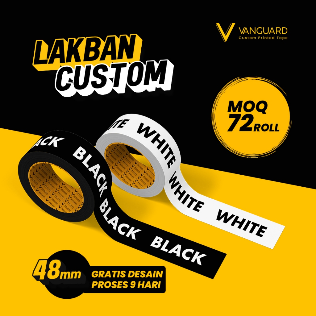 Lakban Custom Logo 48mm 72 roll Cetak Printing Vanguard, MOQ 1 dus isi 72 roll, QUANTITY TERKECIL SE-DUNIA, Custom Print