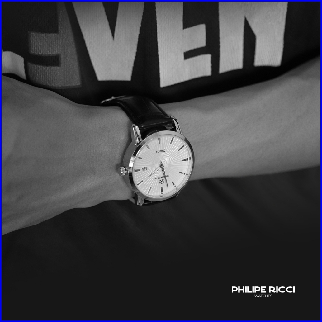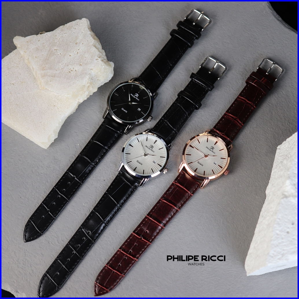 Philipe Ricci Jam Tangan Pria Kulit Analog Quartz Strap Leather Dial Bulat Besar Model Terbaru 4237 Man Watches Splash R