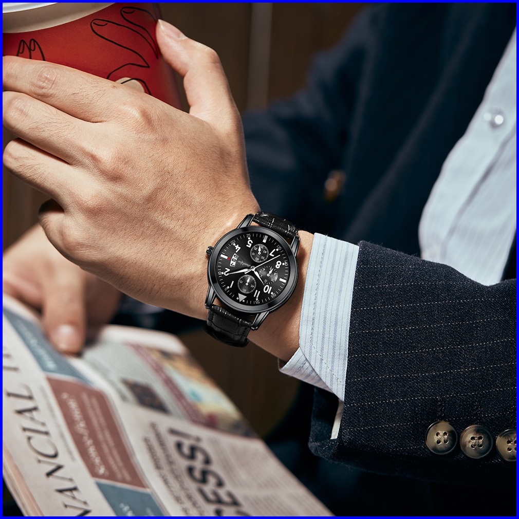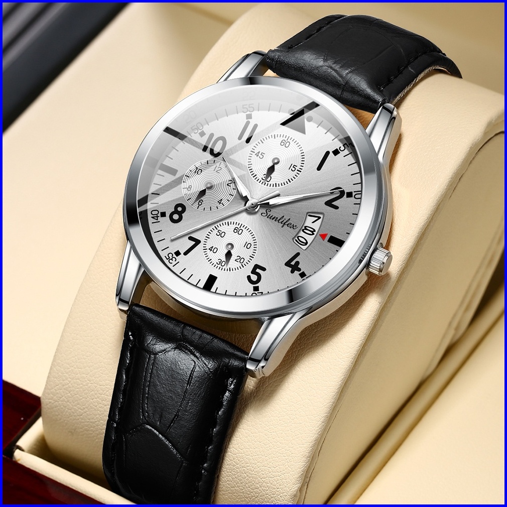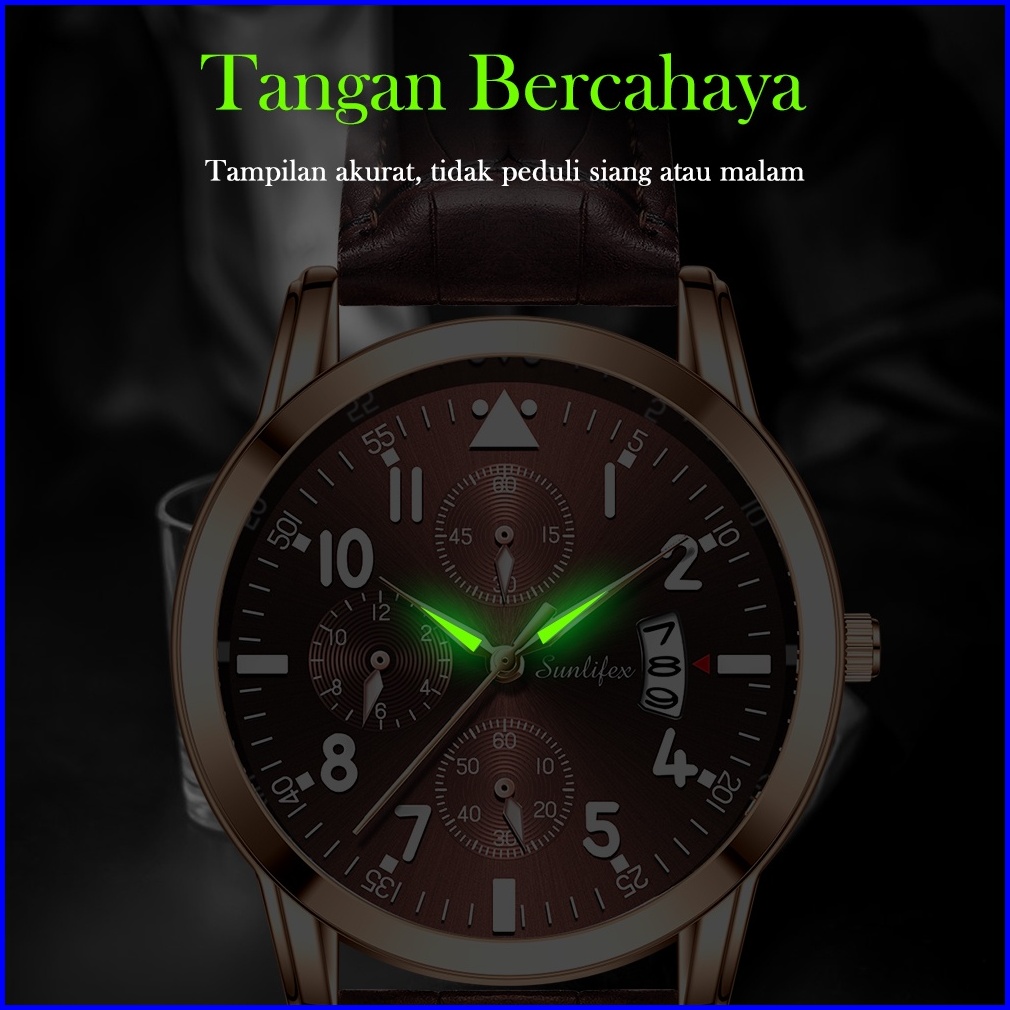 Sunlifex Jam Tangan Pria 7004 Original Anti Air Kuarsa Tali Kulit Jam Tangan Cowok
