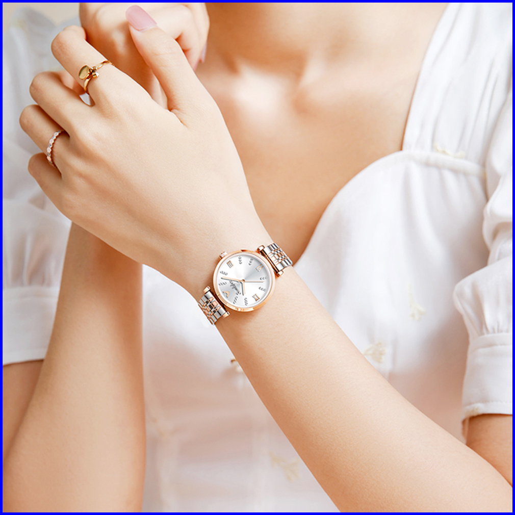 Sunlifex Jam Tangan Wanita Berlian 9018 Original Anggun Santai Wanita Tali Stainless Steel Jam Tangan Cewek