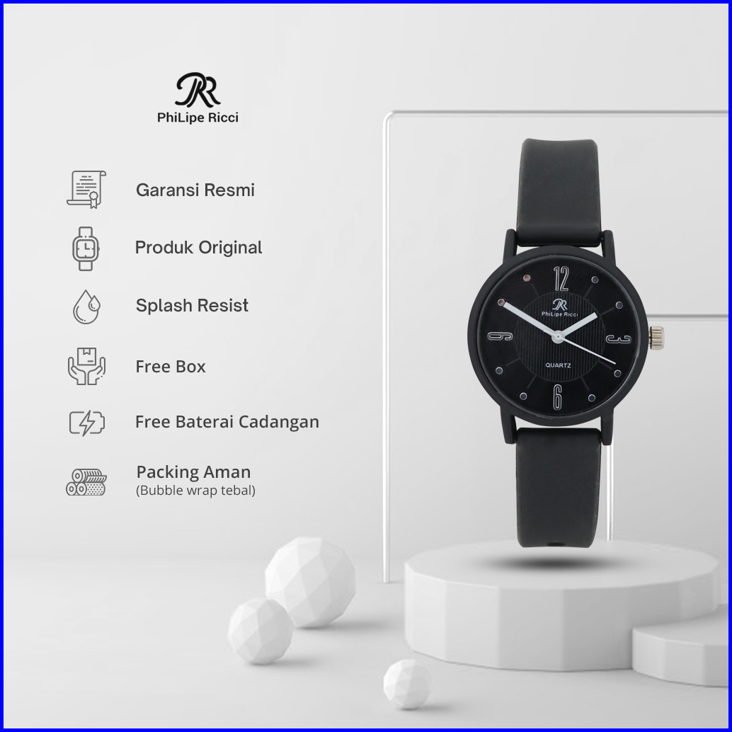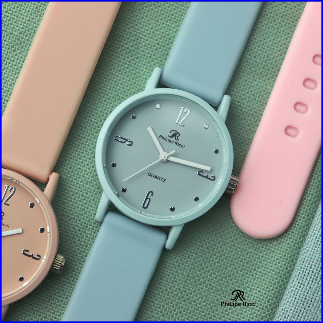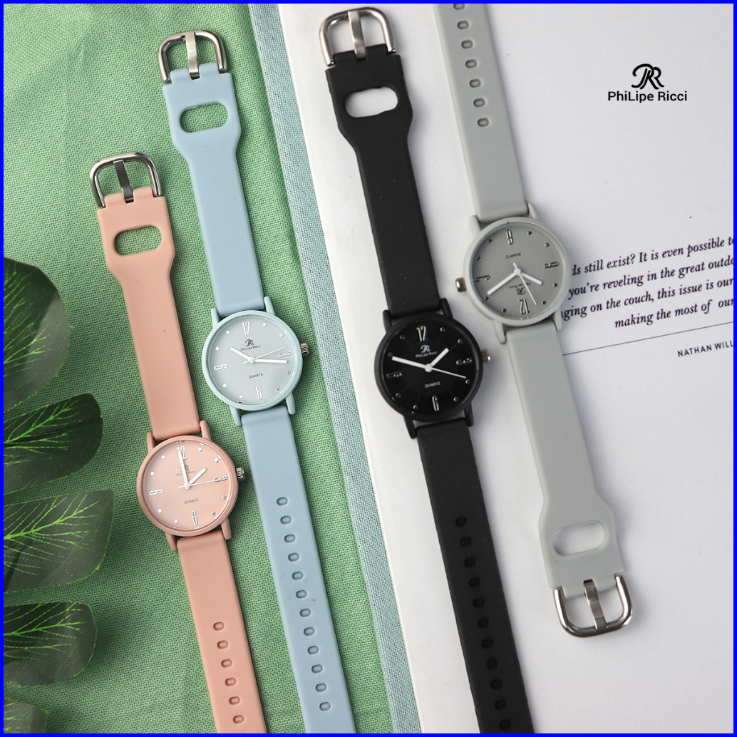 Philipe Ricci Jam Tangan Wanita Analog Karet Dial Bulat Diameter Mini Ukuran Kecil Ruber 8665 Free Box