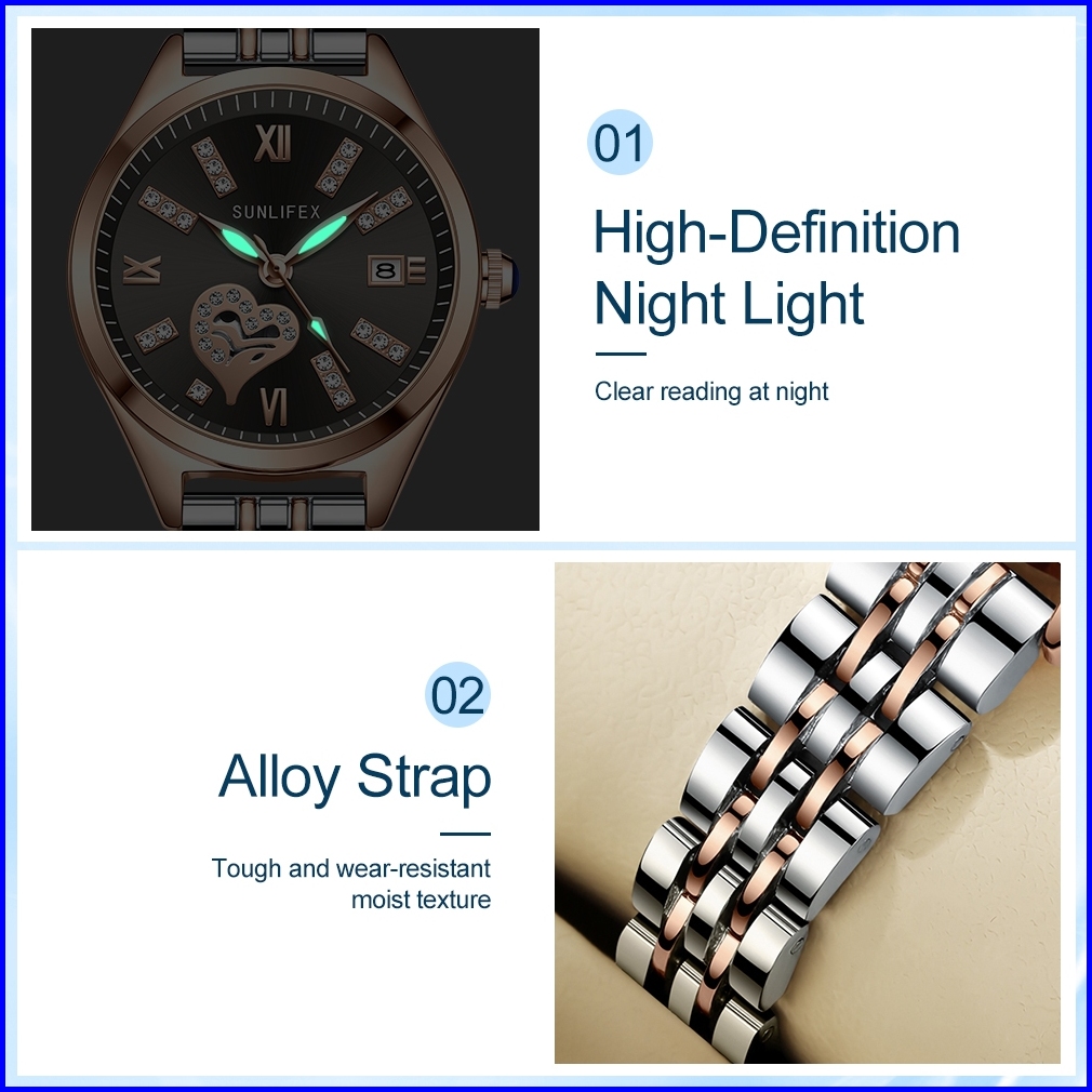 Sunlifex Jam Tangan Wanita 6000 Calendar Berlian Elegan Santai Jam Tangan Cewek Original New