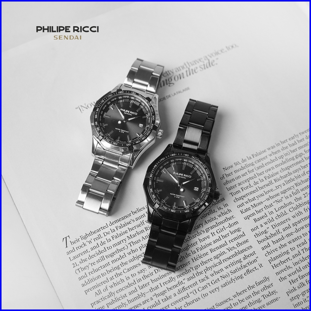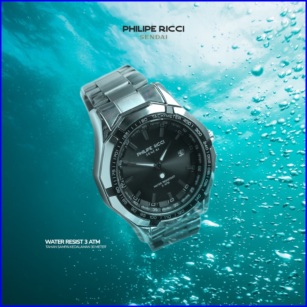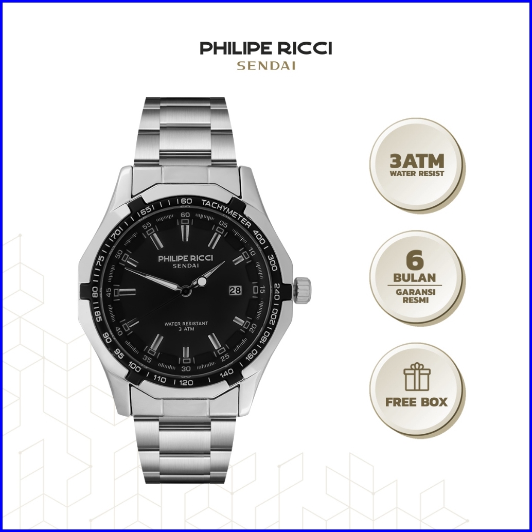 Philipe Ricci Sendai Jam Tangan Pria Rantai Besi Water Resist 100 Ori Keren Modern 6342 Free Box