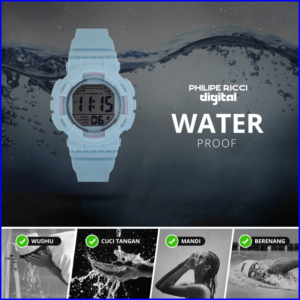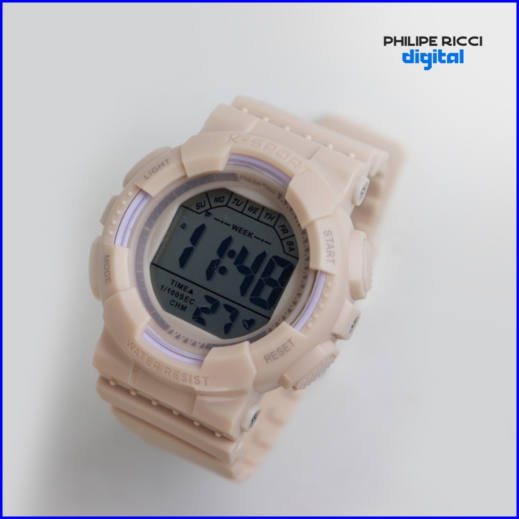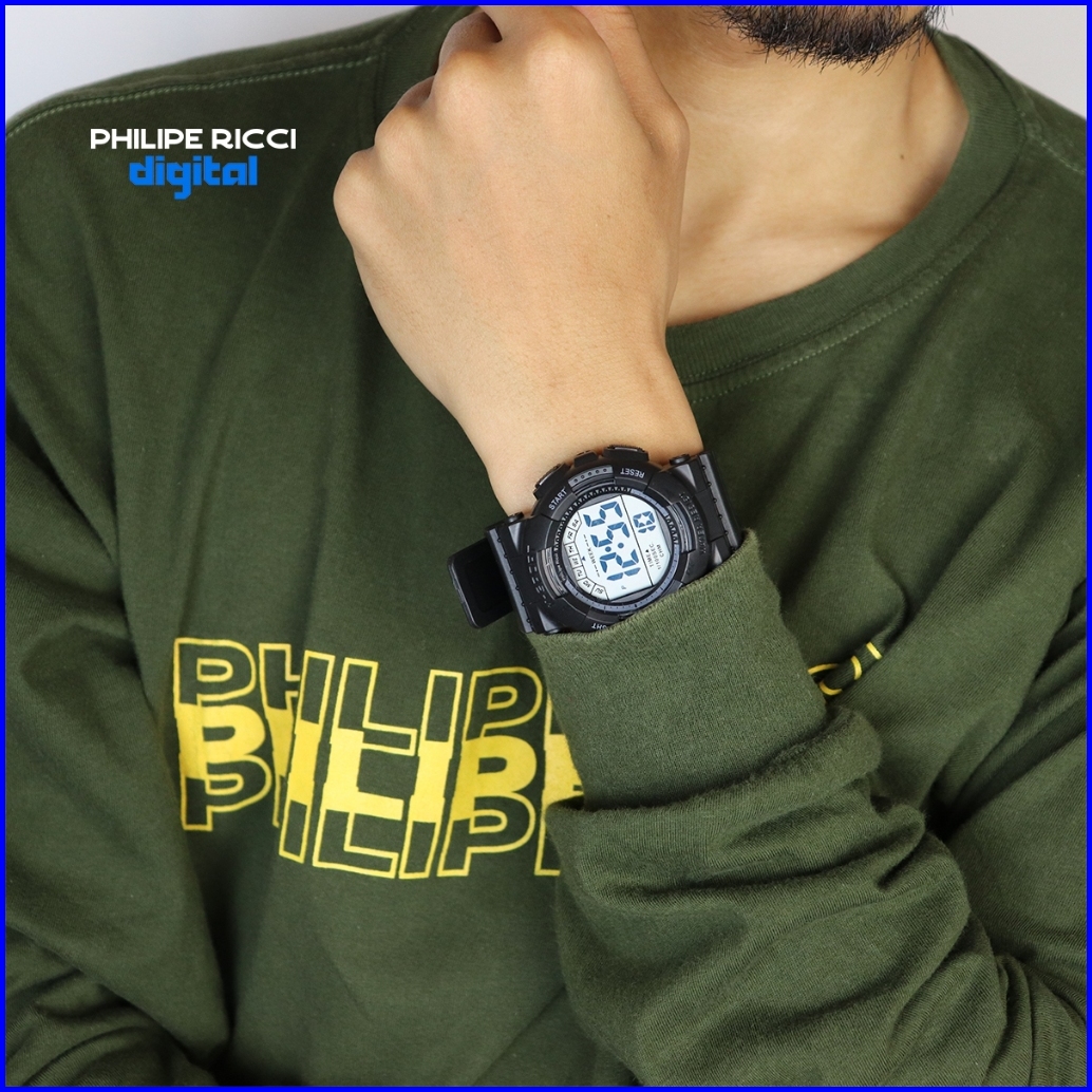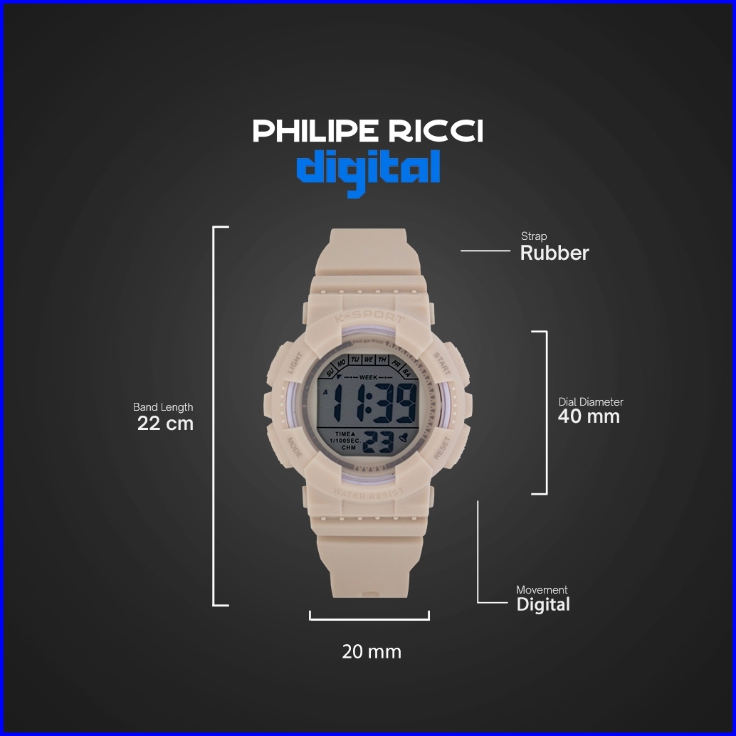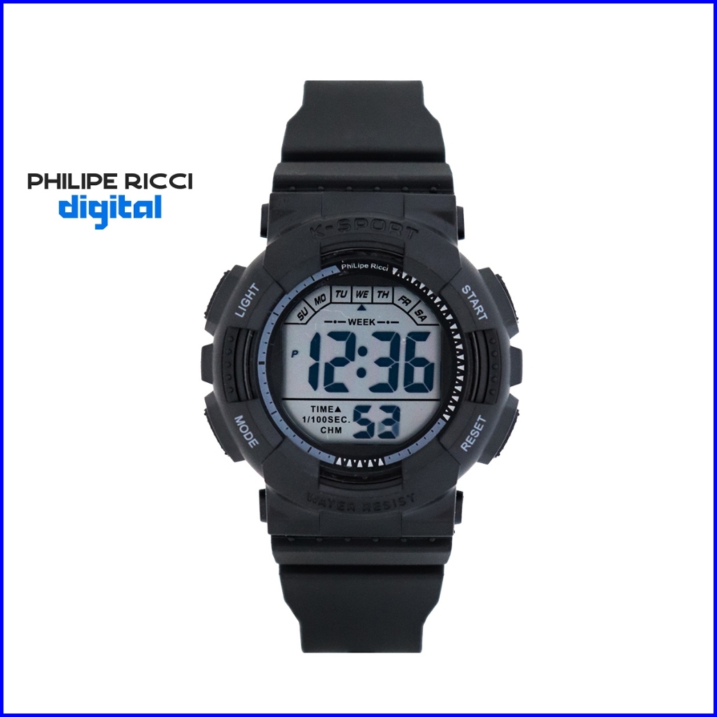 Philipe Ricci Digital Jam Tangan Pria Wanita Anti Air Unisex Diameter Bulat Strap Ruber Desain Simpel Up To Date F146 Wa