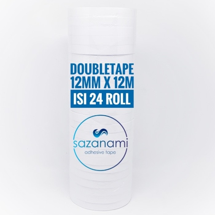 Double Tape 12mm x 12 Meter DoubleTape Kertas Putih SAZANAMI isi 24Rol