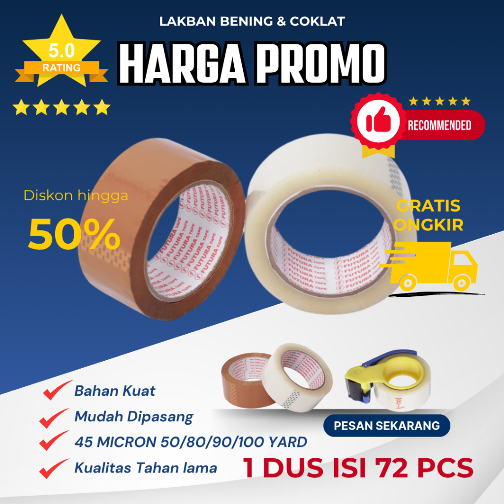 1 BOX 1 DUS 90 / 100 Lakban Bening / Coklat Yard Isi 72 pcs FUTURA