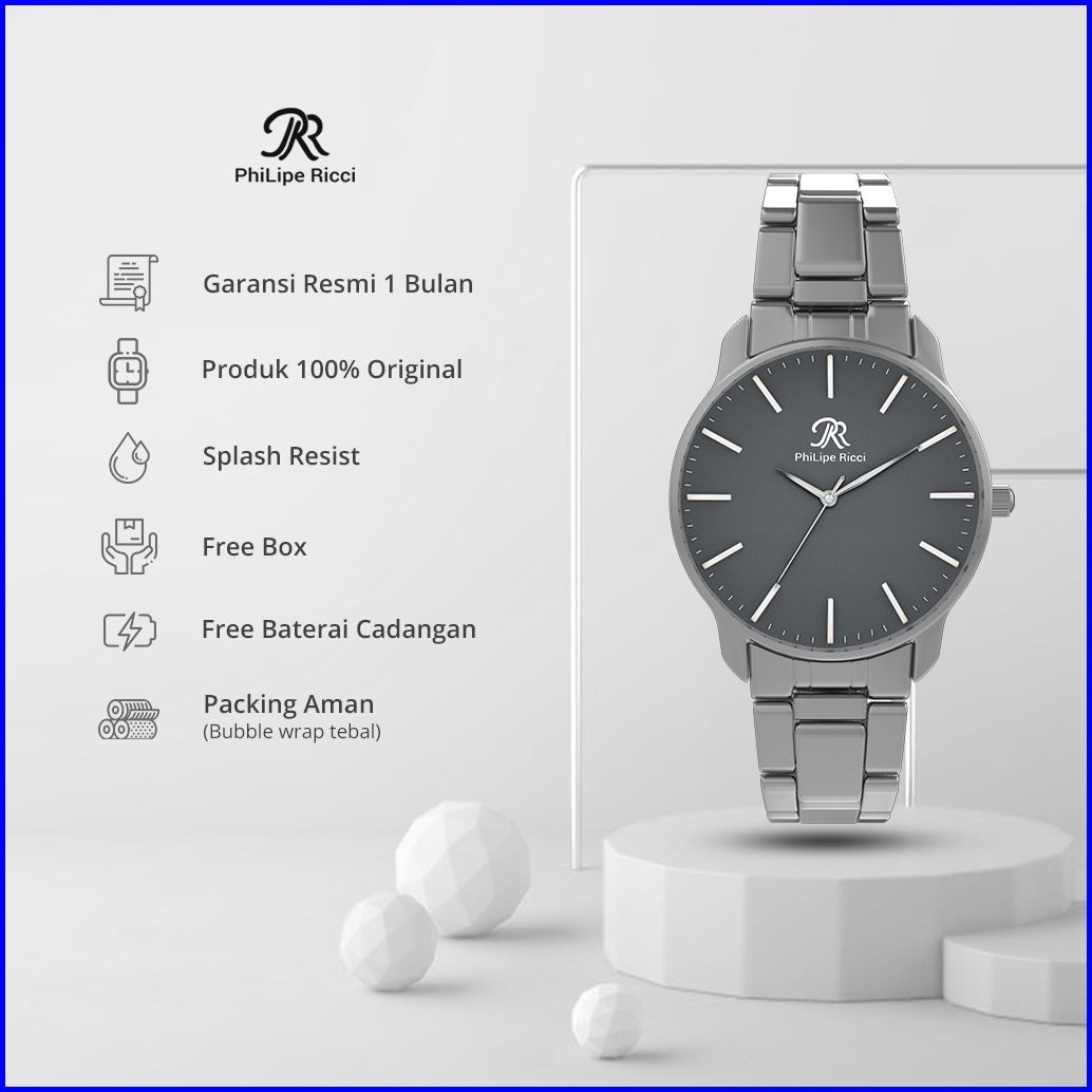 Philipe Ricci Jam Tangan Pria Besi Rantai Analog Original Pr15 Free Box