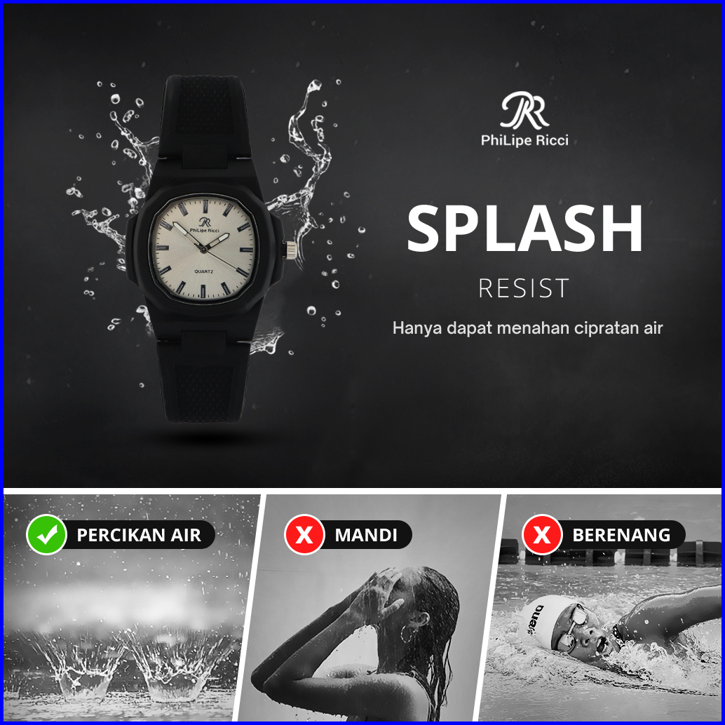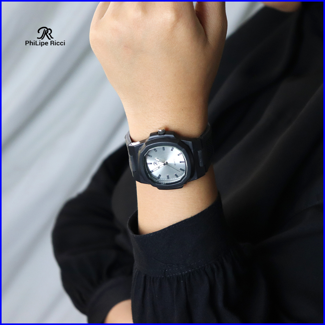 Philipe Ricci Jam Tangan Pria Wanita Unisex Analog Strap Tali Karet Dial Kotak 9065 Rubber Square Watches Free Box