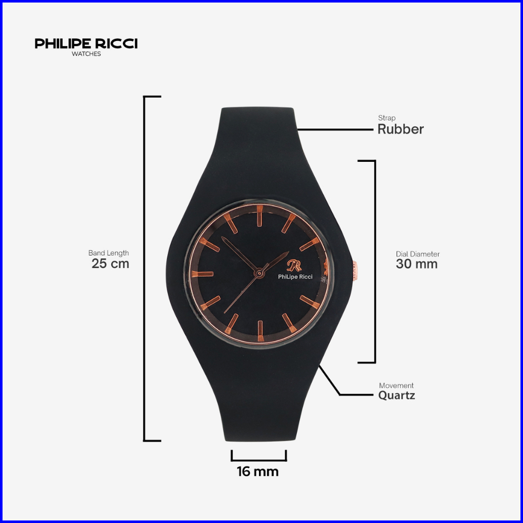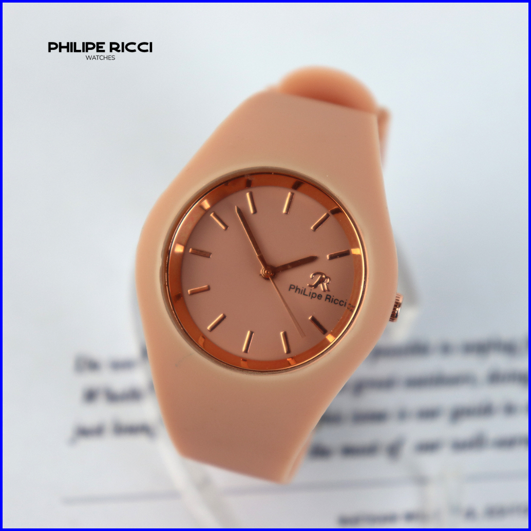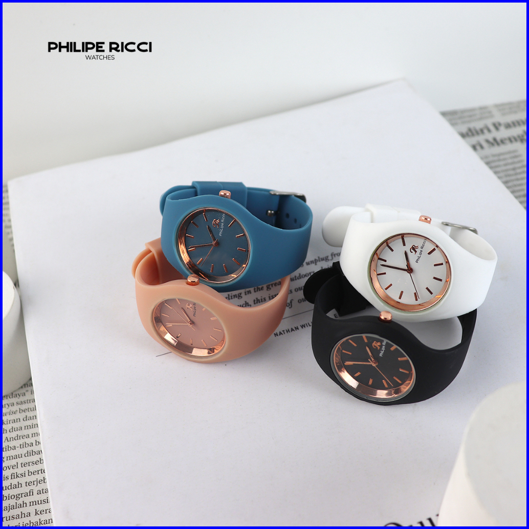 Philipe Ricci Jam Tangan Wanita Kecil Original Cewek Analog Strap Karet Tali Rubber Diameter Bulat Model Simpel Kekinian