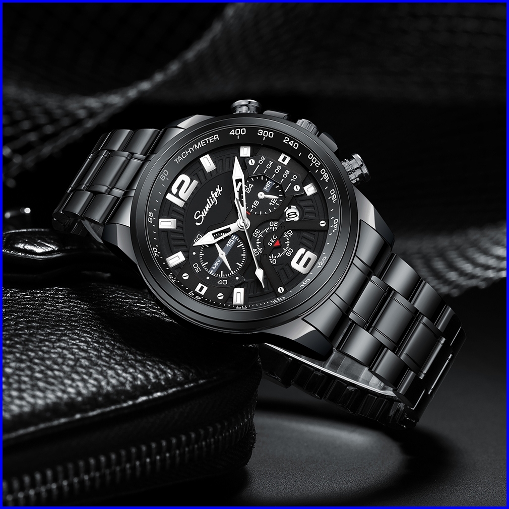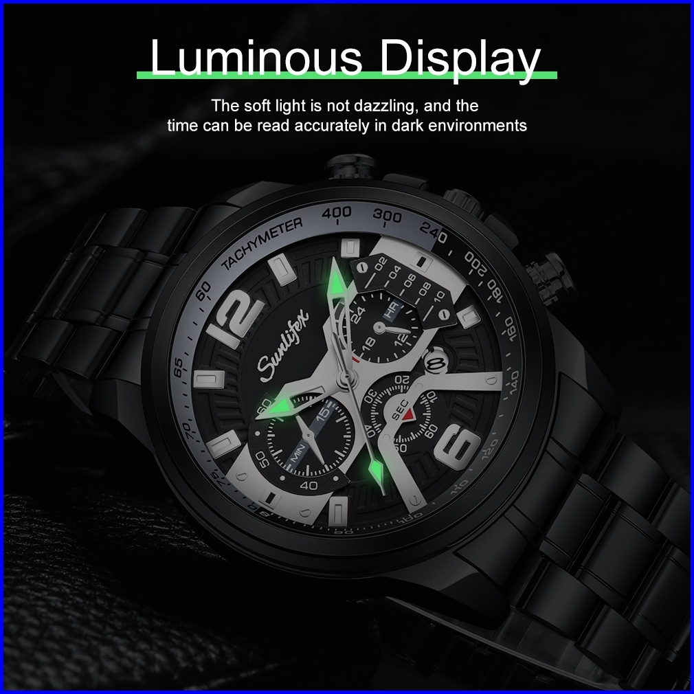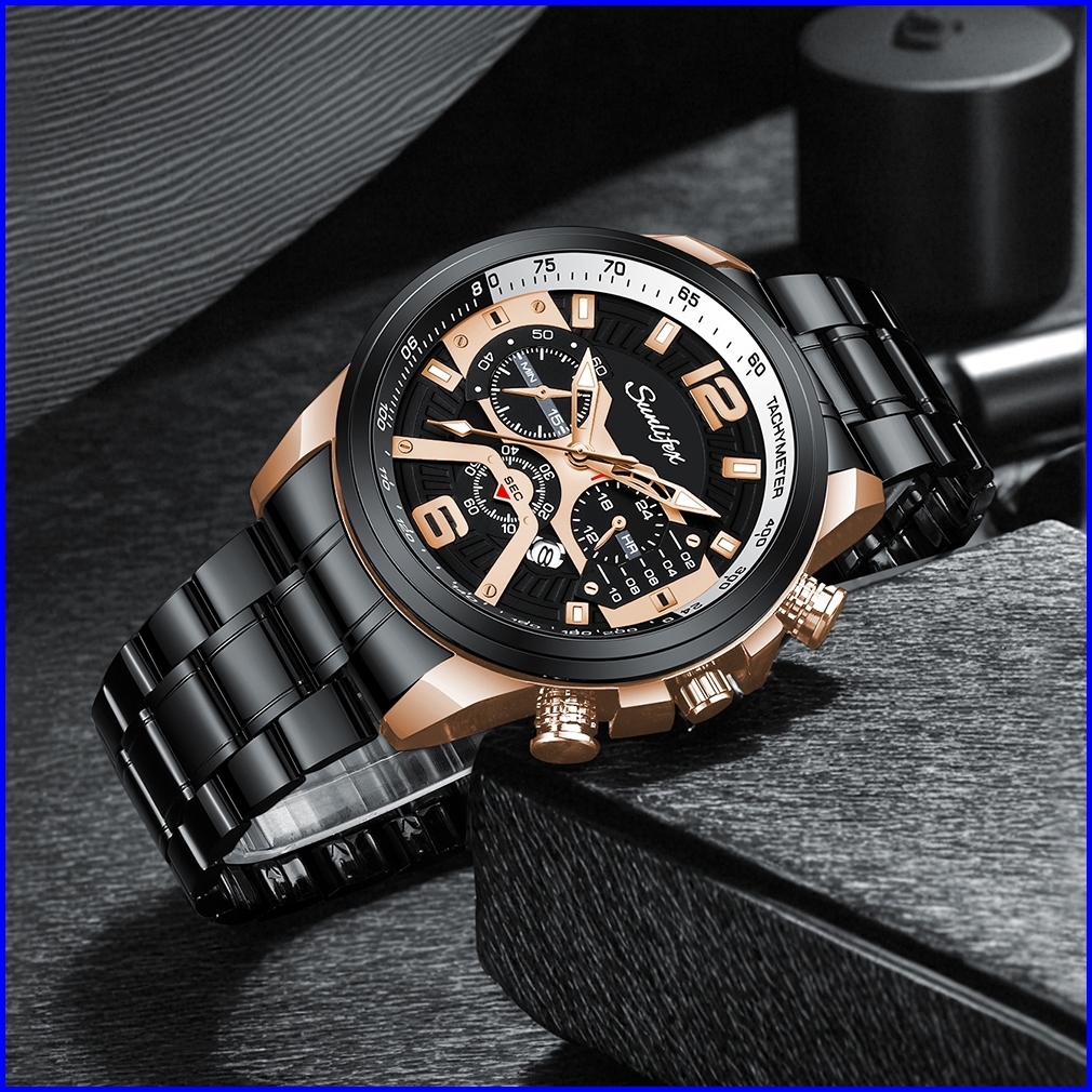 Sunlifex Jam Tangan Pria 9033 Kalender Kasual Kemewahan Tali Stainless Steel Kuarsa Jam Tangan Cowok