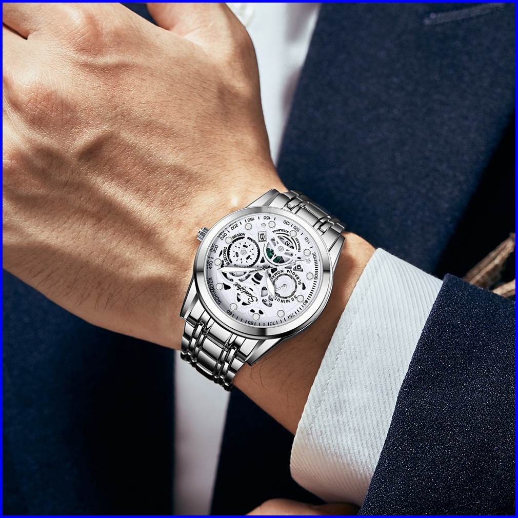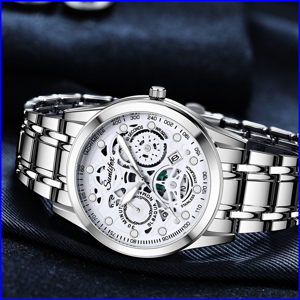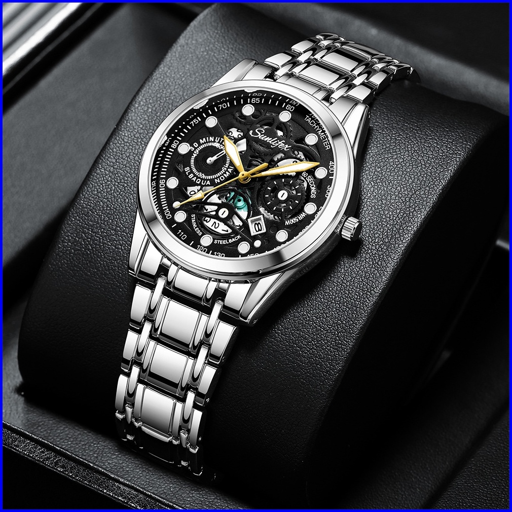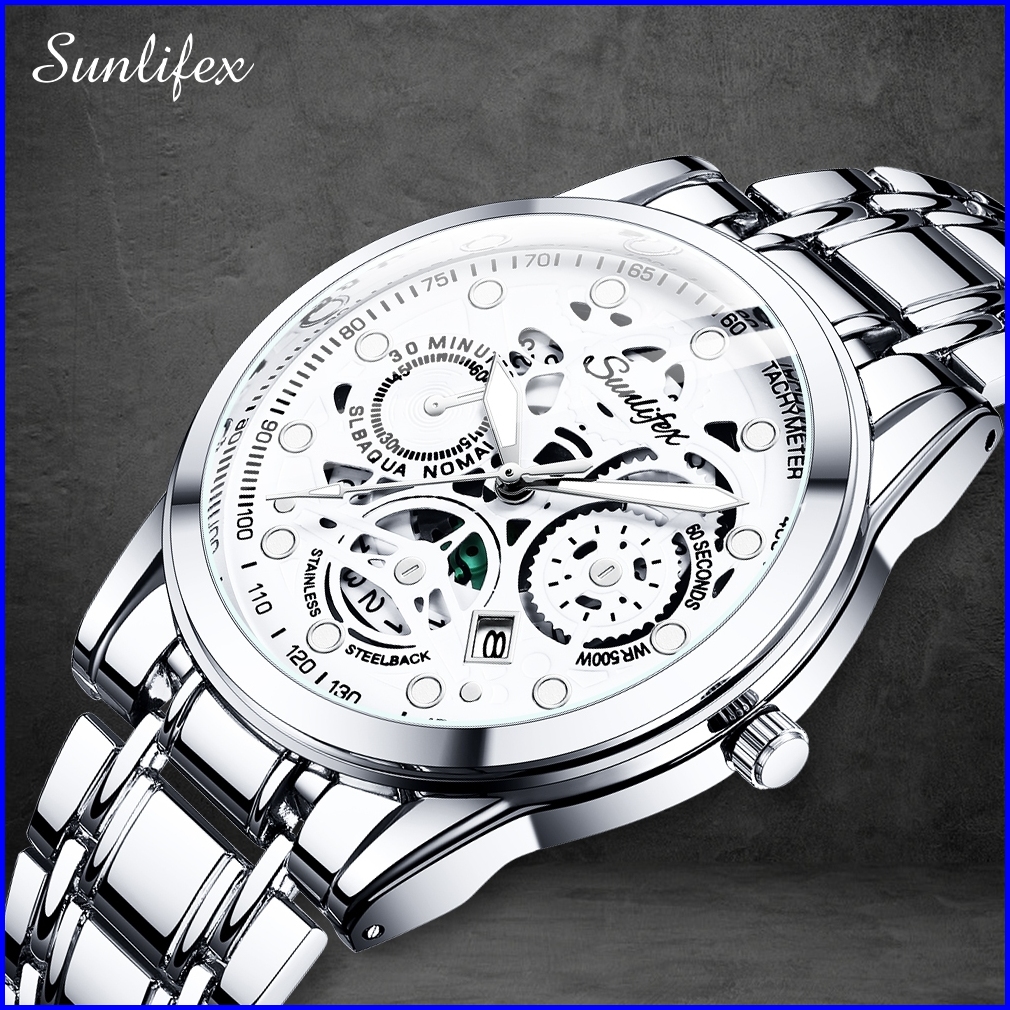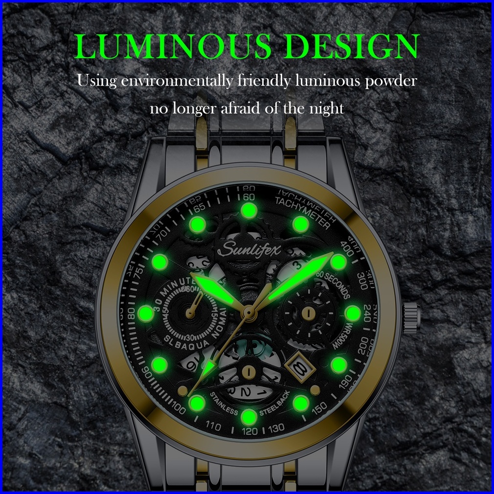 Sunlifex Jam Tangan Pria 9001 Original Display Kuarsa Anti Air Tali Stainless Steel Santai Mode Jam Tangan Cowok
