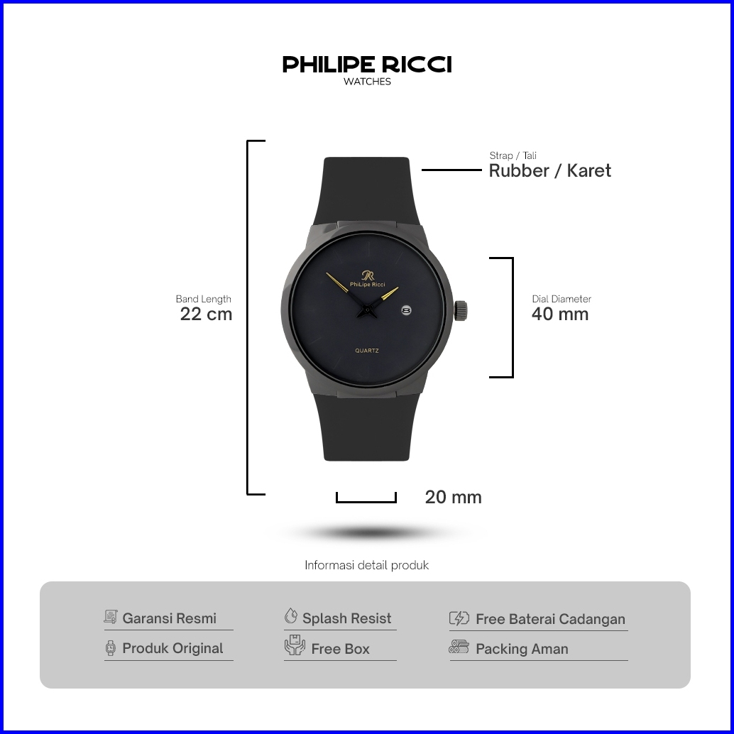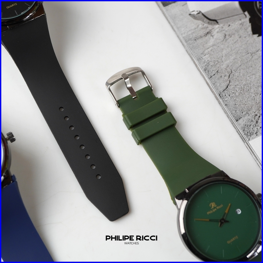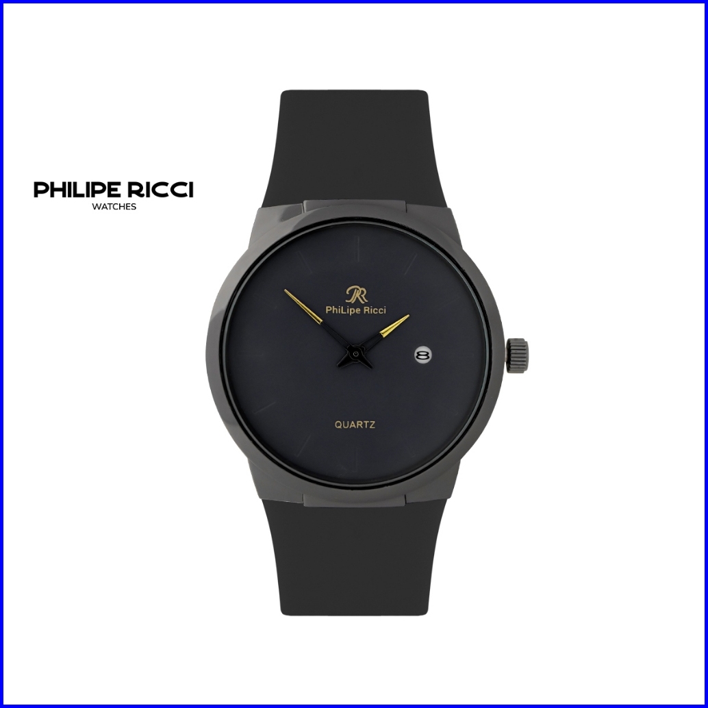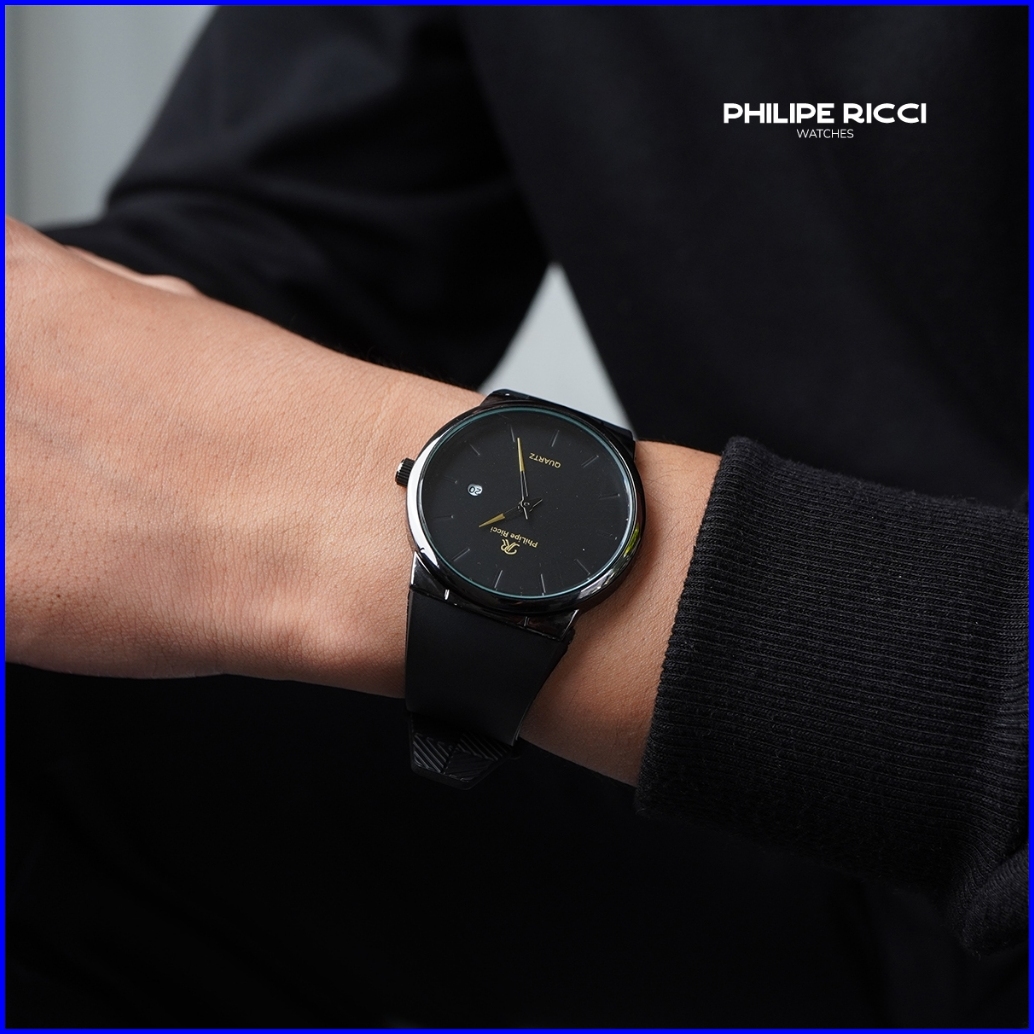 Philipe Ricci Jam Tangan Pria Karet Hitam Simple Terbaru Ori Tipis Keren 7553 Men Watches Free Box