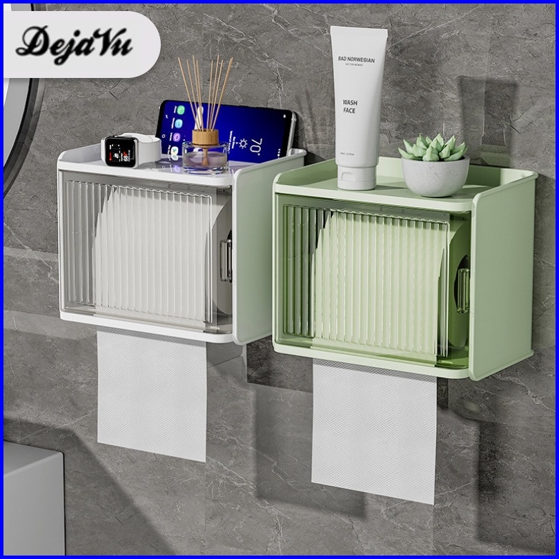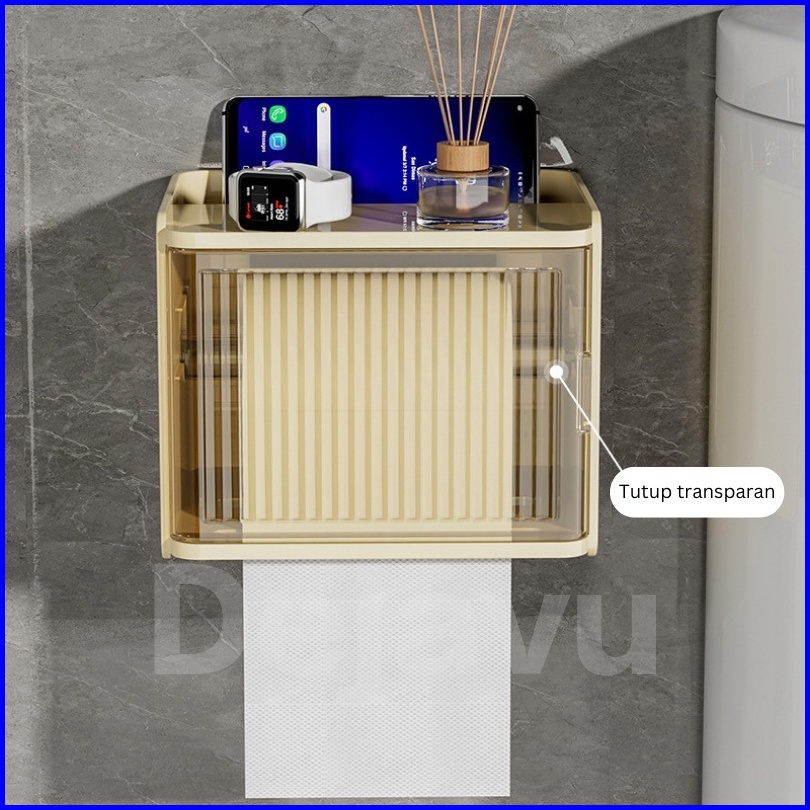 Dejavu Kotak Tissue Gulung Tempel Dinding Tempat Tisu Toilet Transparan Organizer Gantung Kamar Mandi Hsb657