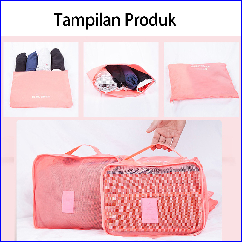 Dejavu Pouch Set 6 In 1 Travel Packing Bag Organizer Travelling Tas Penyimpanan Koper Travel Anti Air Ttb01