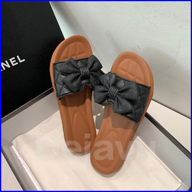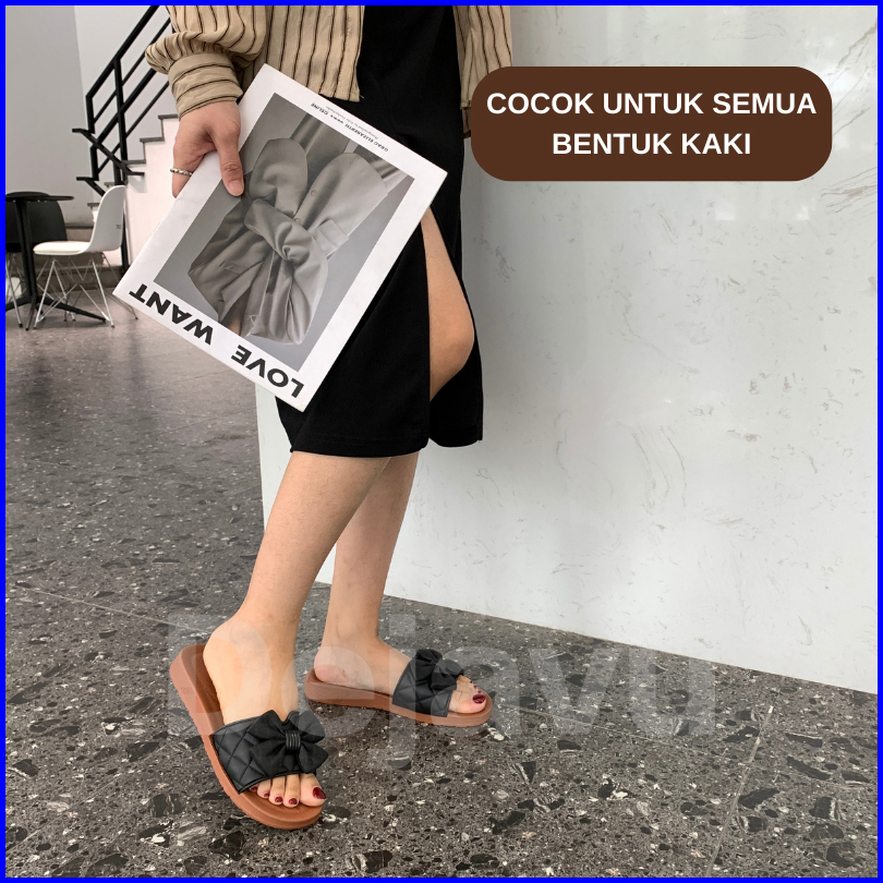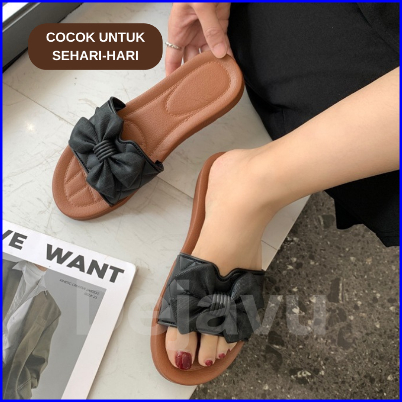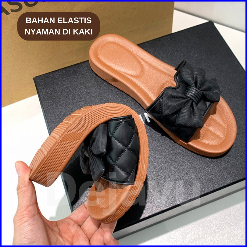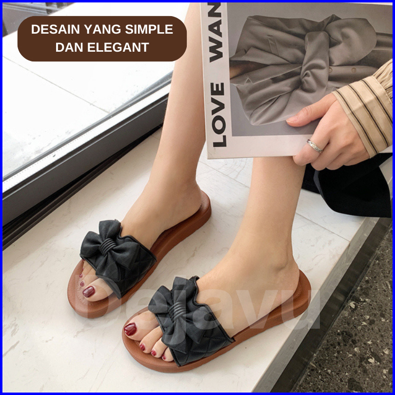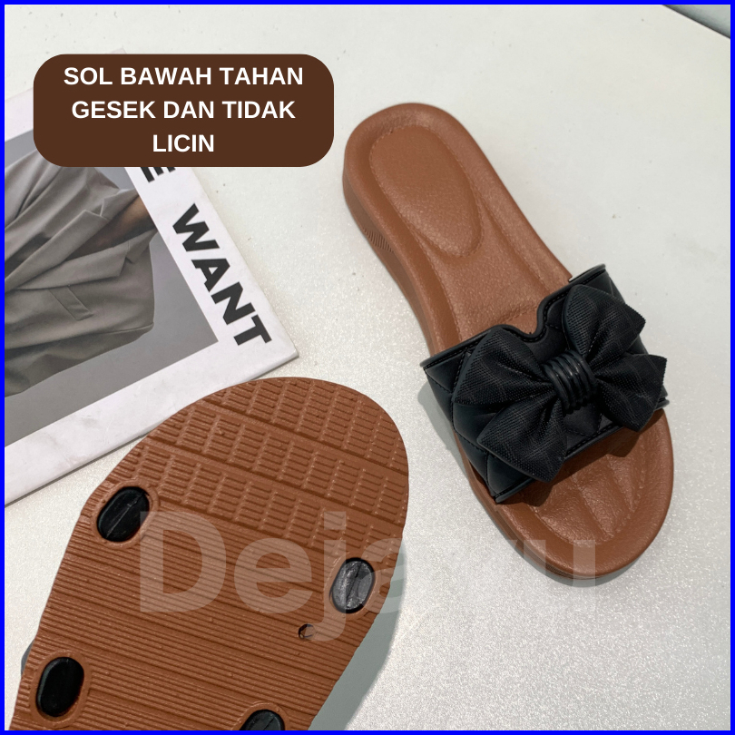 Dejavu Sandal Karet Wanita Slop Flat Sendal Jelly Rumah Empuk Pita Korean Kekinian Hsn178