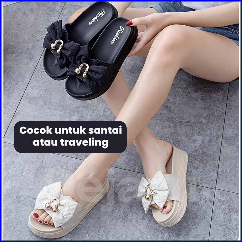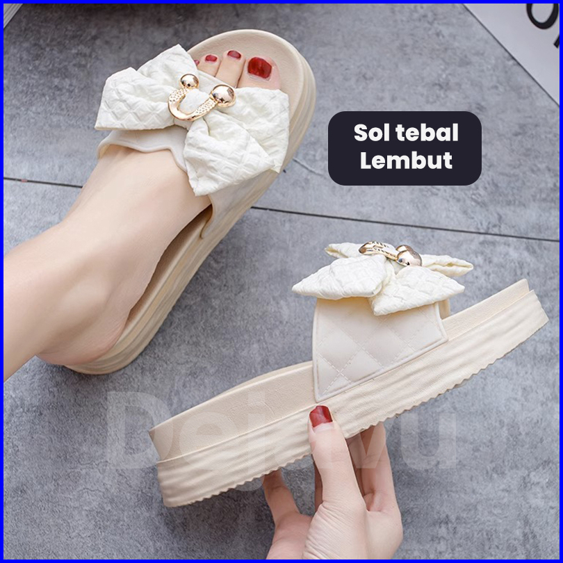 Dejavu Sandal Wanita Kekinian Pita Sendal Slop Karet Rumah Empuk Sepatu Hsn170