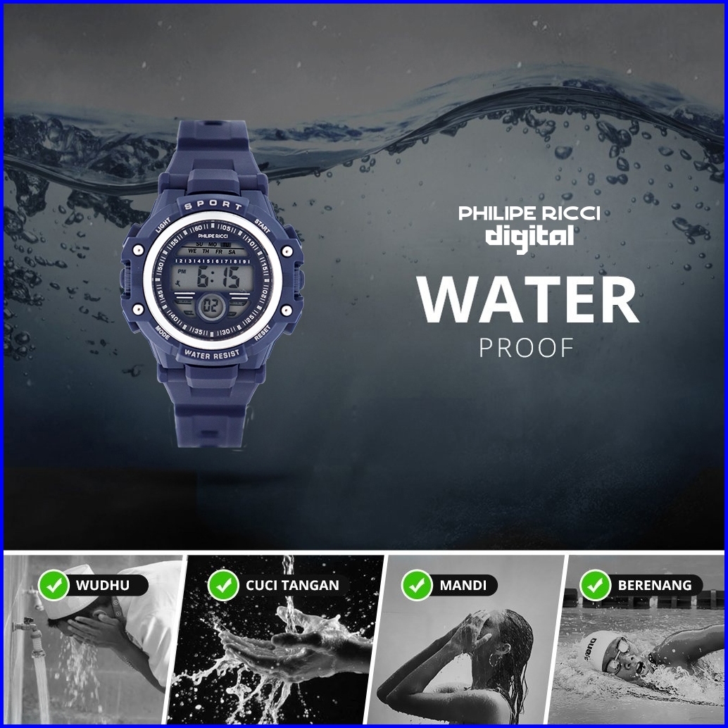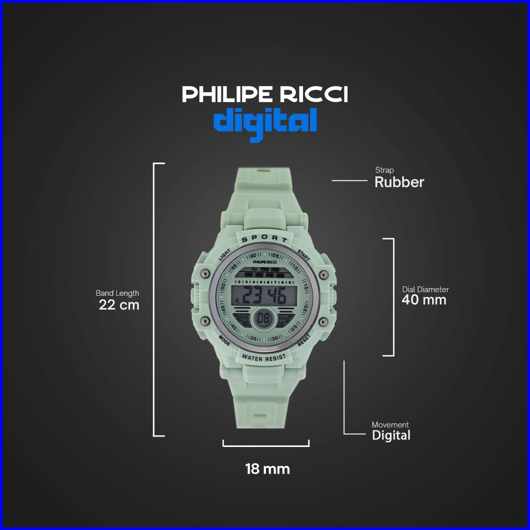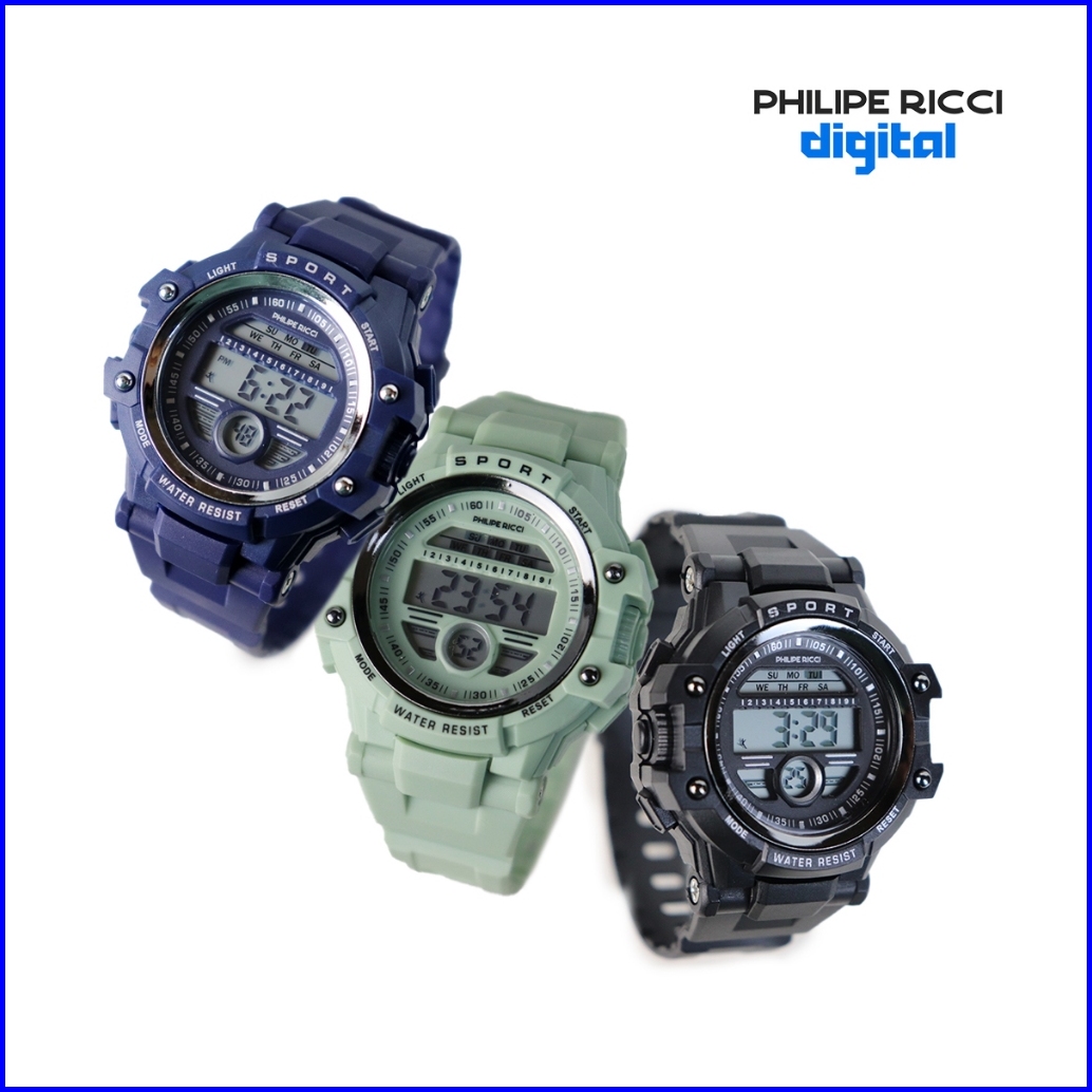 Philipe Ricci Digital Jam Tangan Pria Anti Air Terbaru Desain Modern Laki Laki Strap Rubber Diameter Bulat 1932 Men Watc