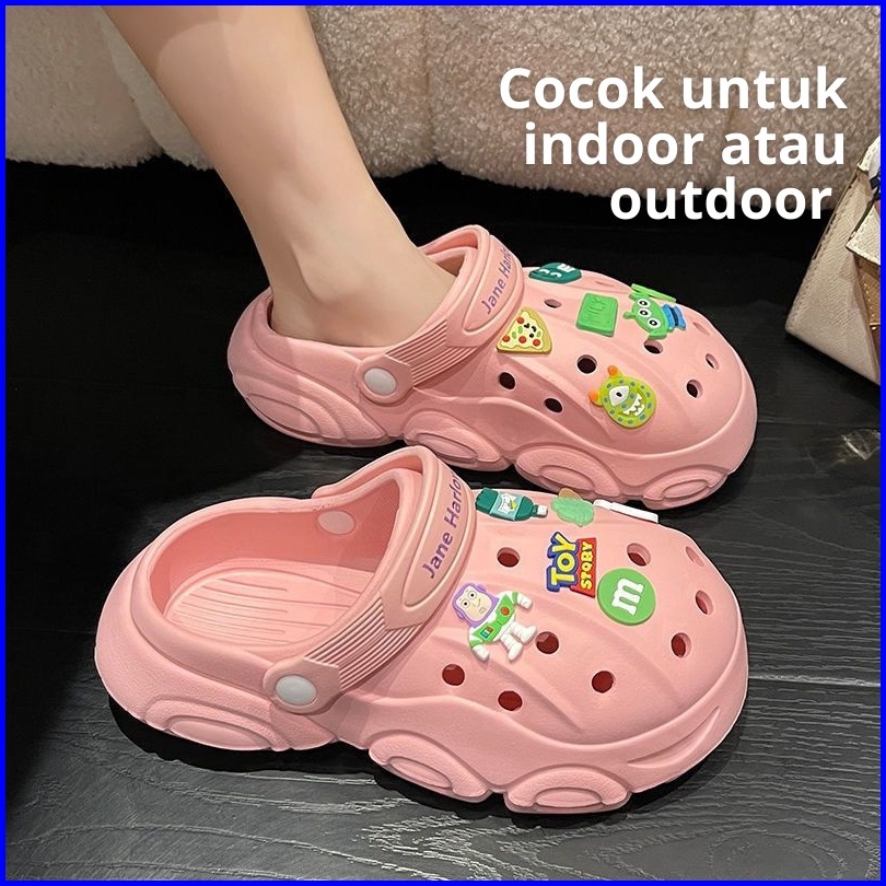 Dejavu Sendal Wanita Sandal Baim Jelly Terbaru Sandal Flat Sendal Motif Lubang Wanita Rumah Elastis Anti Slip Hsn116