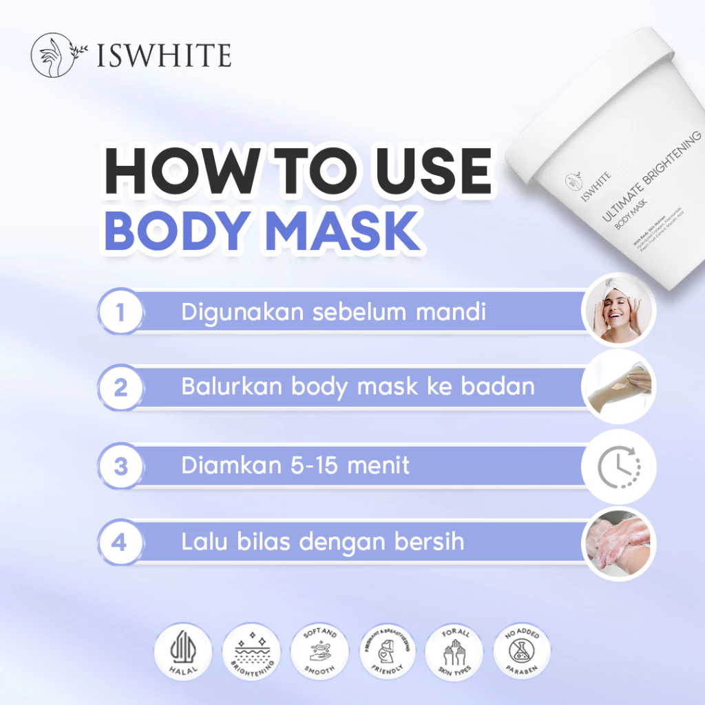 ISWHITE Masker Badan (Body Mask Brightening Ultimate) 70gr/200gr - Pencerah Badan Seluruh Tubuh Menghilangkan Bekas Luka