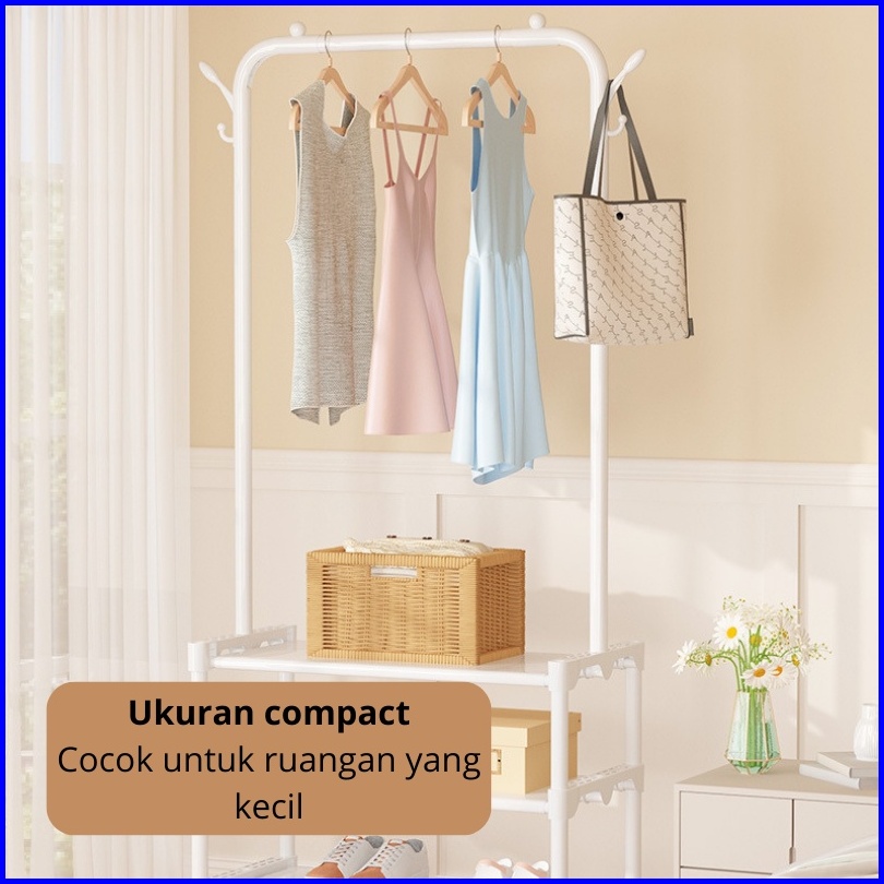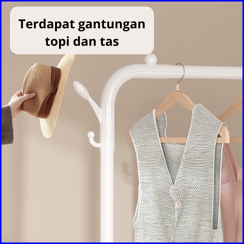Dejavu Rak Gantungan Baju Roda Minimalis Rak Sepatu Susun Stand Hanger Gantung Topi Tas Pakaian Hsh121