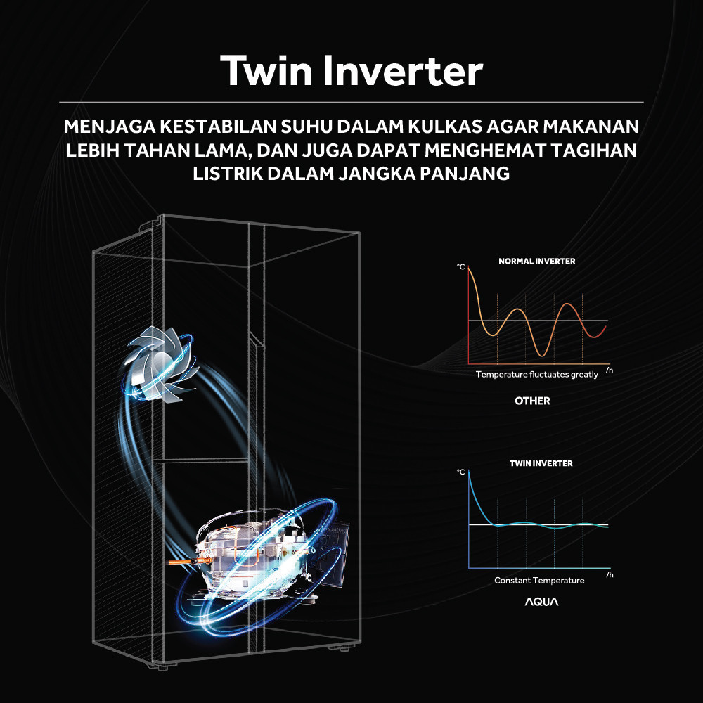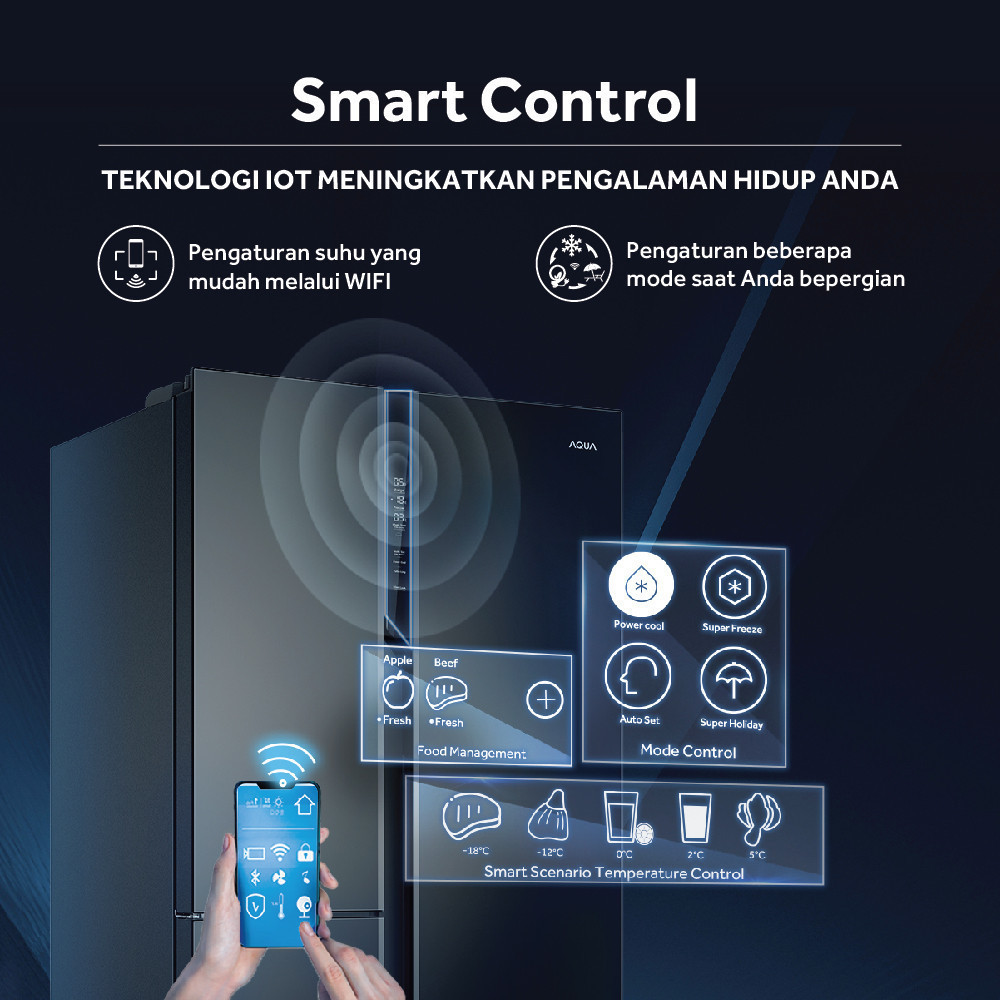 KULKAS SIDE BY SIDE AQUA KULKAS MAGIC CONVERTIBLE SMART CONTROL KESEGARAN 2 KALI LEBIH LAMA UKURAN 540L,598L,630L