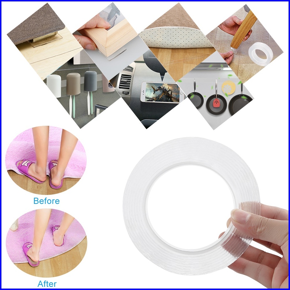Double Tape Perekat Transparent No Trace Washable Sticker 3x2mm 1m