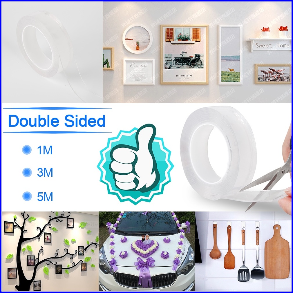 Double Tape Perekat Transparent No Trace Washable Sticker 3x2mm 3m