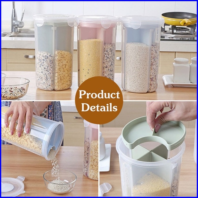 Toples Penyimpanan Beras Wadah Sereal Oats Storage Jar 4 Slot Size L
