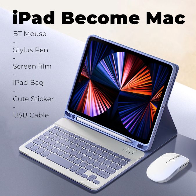 Ipad Air 11 2025 Book Cover Leather Flip Case Keyboard Wireless Bluetooth Mouse Silent Click Casing Sarung Kulit
