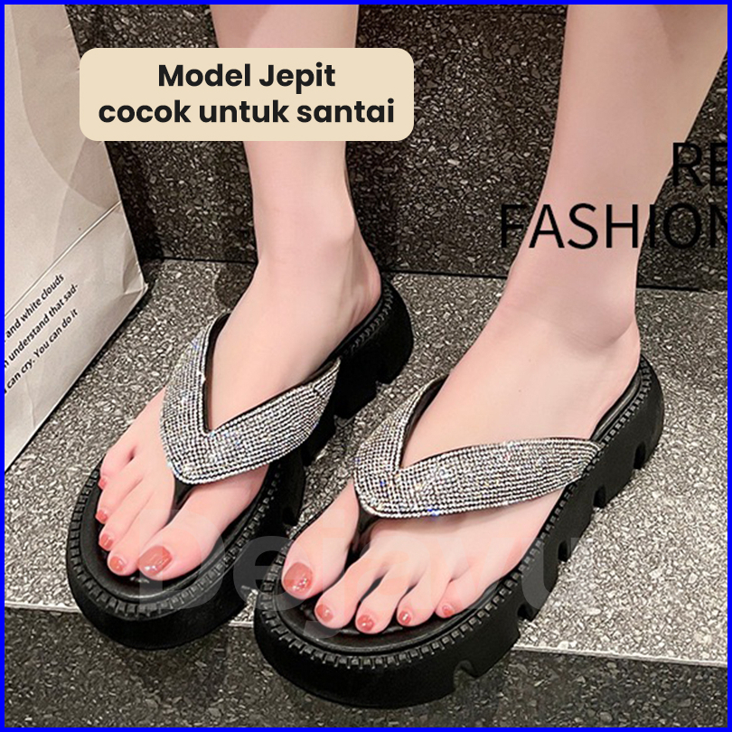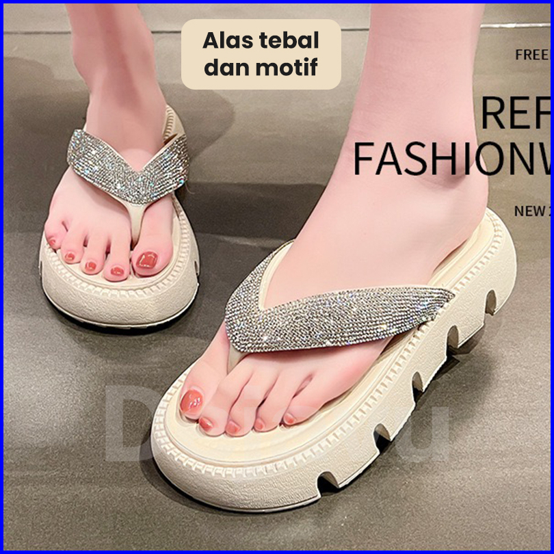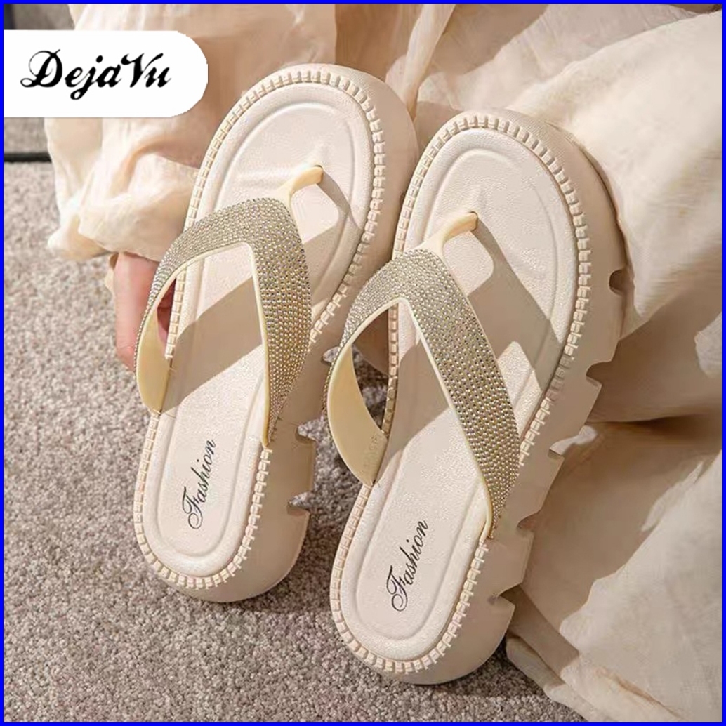 Dejavu Sendal Wanita Wedges Jepit Karet Sandal Korean Jelly Soft Slippers Cewek Dewasa Anti Slip Empuk Elastis Kekinian