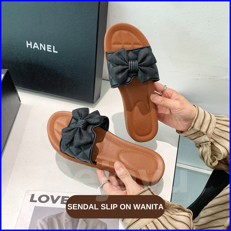 Dejavu Sandal Selop Jelly Wanita Nyaman Empuk Sandal Karet Anti Slip Rumah Flat Pita Korea Hsn178