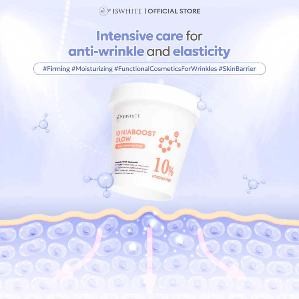 ISWHITE 10 Niaboost Glow Body Body Sleeping Mask with 10% Niacinamide 150ml
