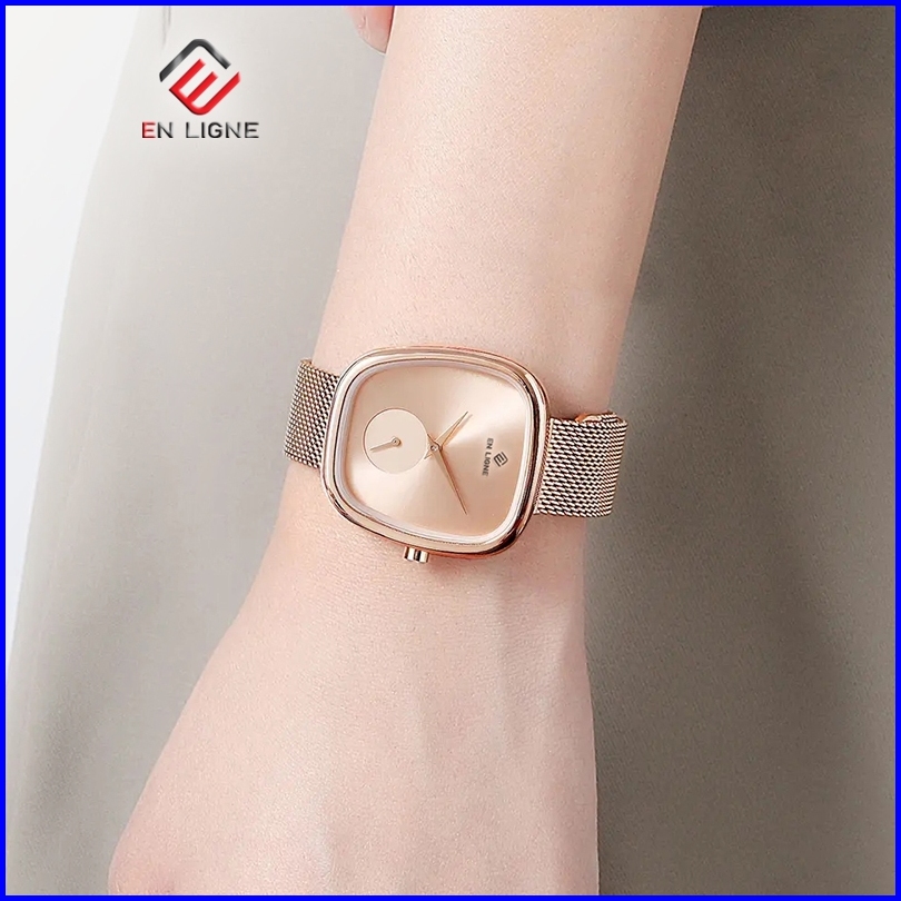 En Ligne - Jam Tangan Wanita Quartz Model Kotak Oval Stainless Tali Rantai Pasir El5988