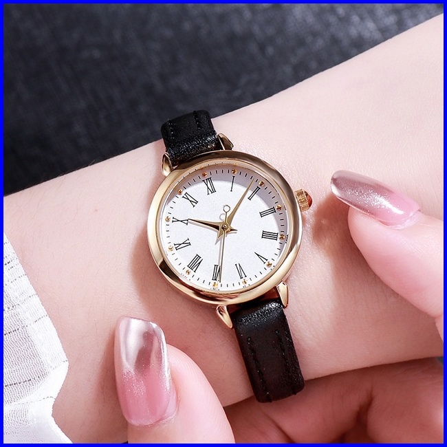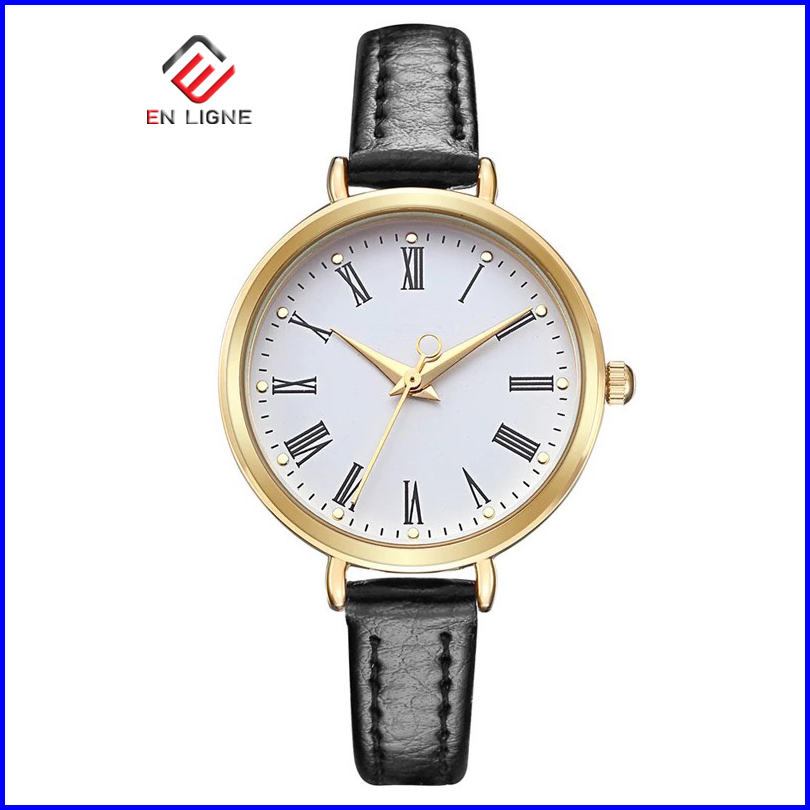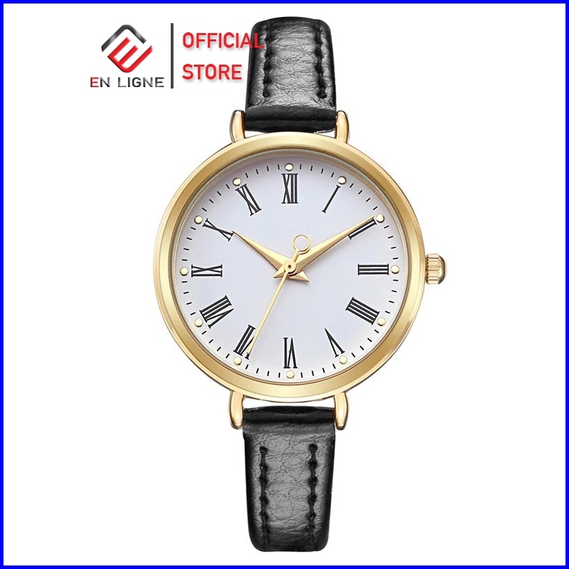 En Ligne - Jam Tangan Kasual Wanita Bulat Mini Tali Kulit El117mn
