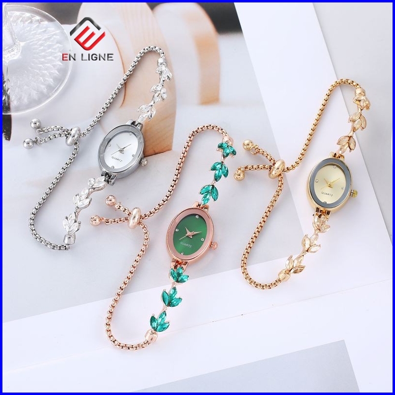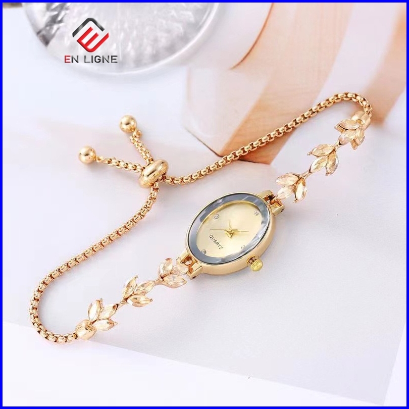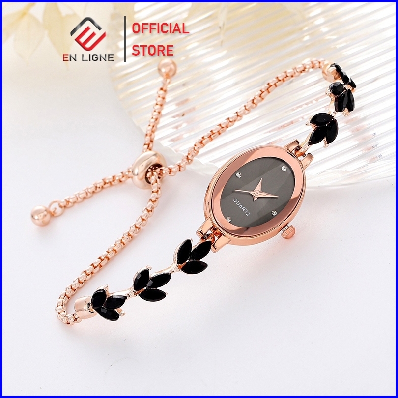En Ligne - Jam Tangan Wanita Tali Rantai Gelang Serut Stainless Oval Lonjong Kecil El4100
