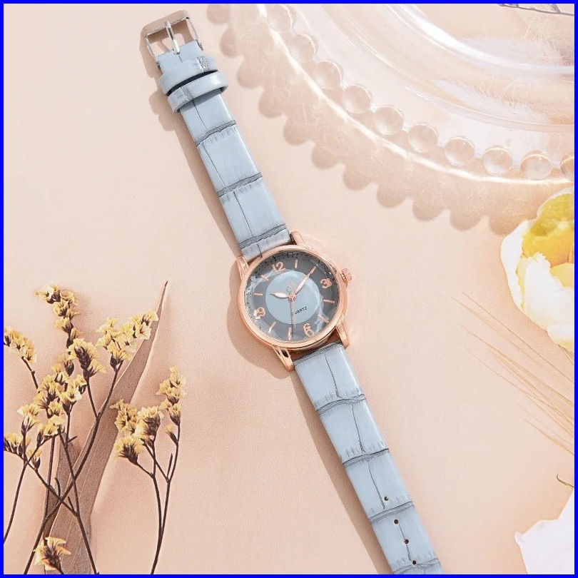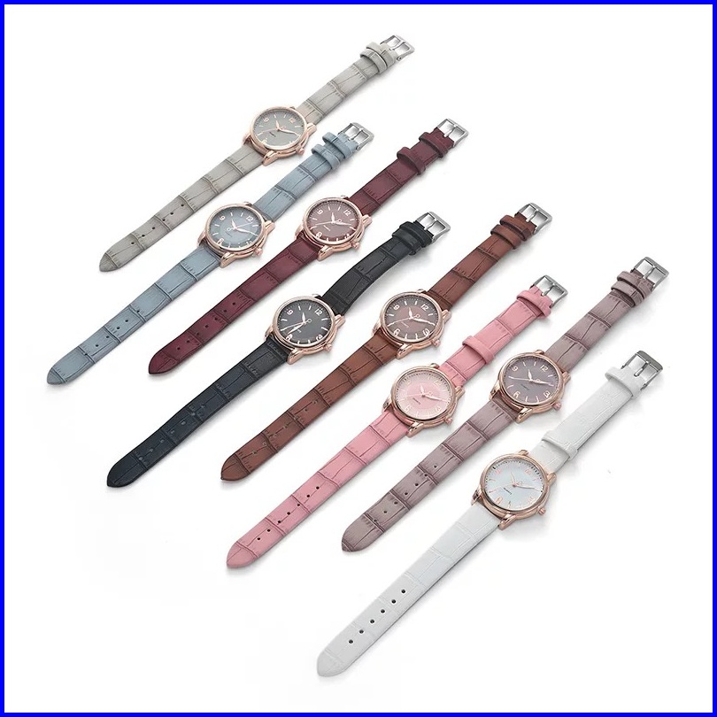 En Ligne - El4116 - Jam Tangan Fashion Wanita Bonus Kalung Model Bulat Tali Kulit Croco