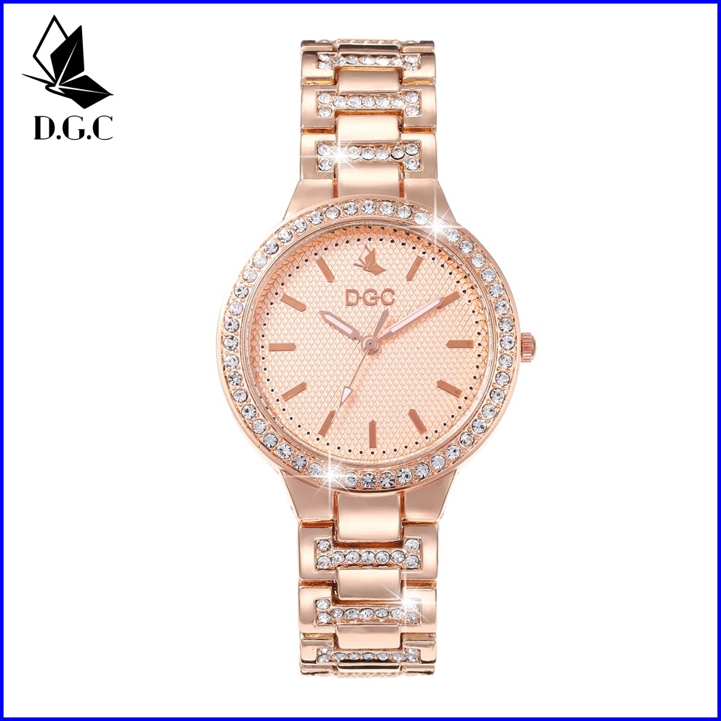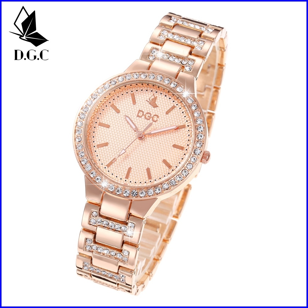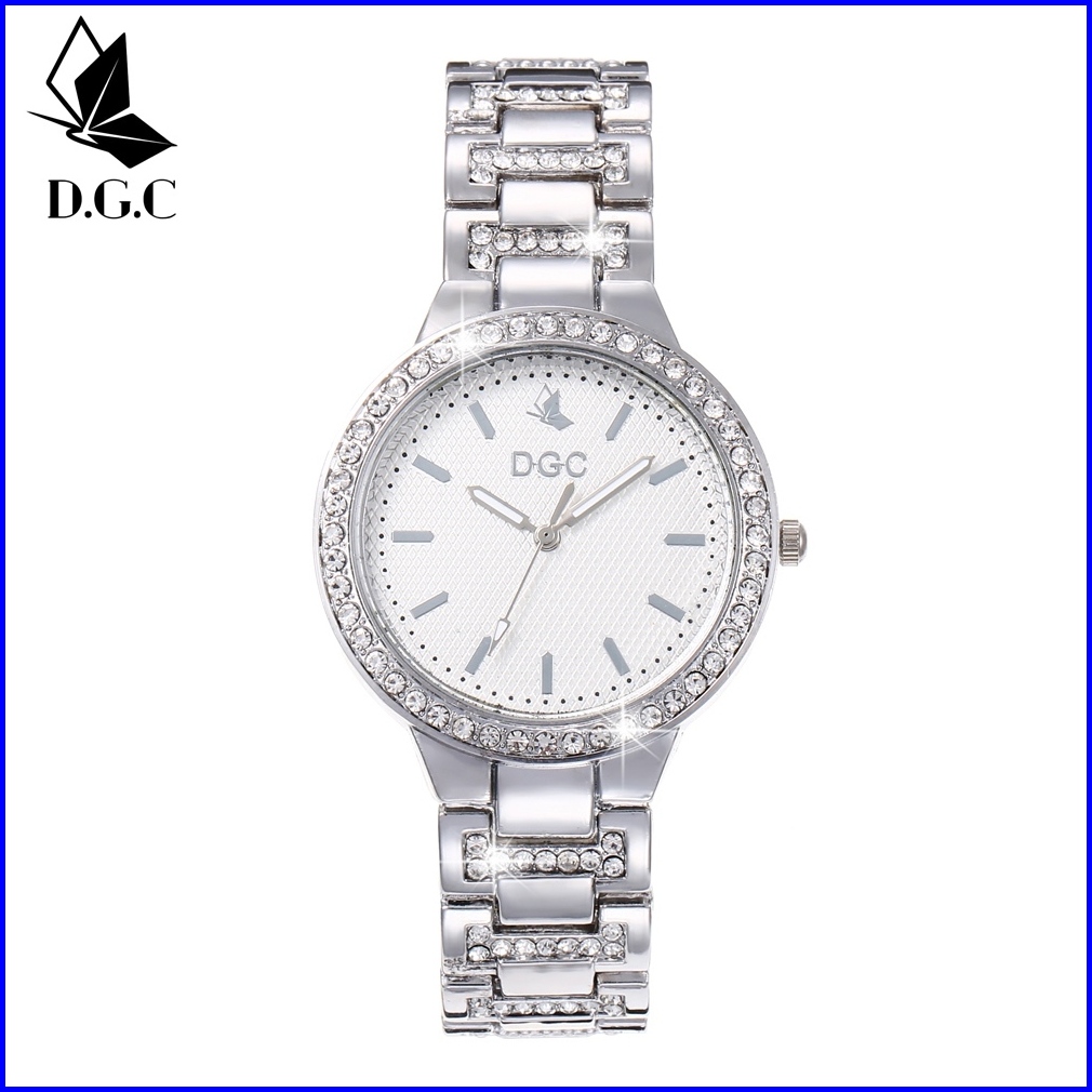 Dgccod Jam Tangan Wanita Free Box Batera Rantai Baja Tahan Karat Berlian Bulat Mewah Model Berlian Kelas Atas Modis Gadi